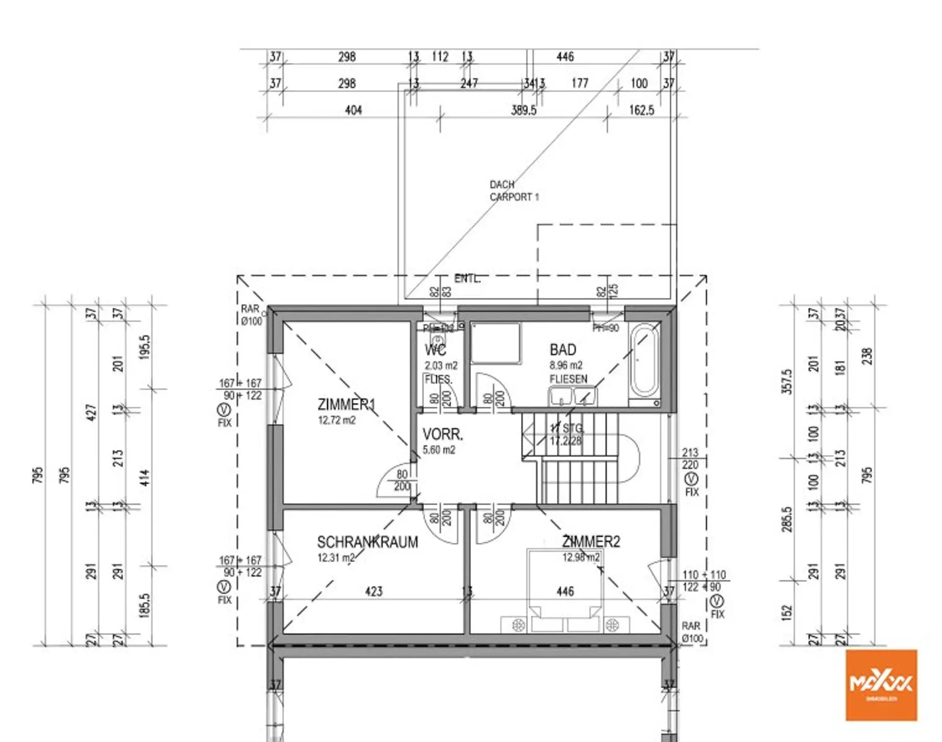 Ihr neues Zuhause verfügt über ein Carport für zwei Autos sowie einen weiteren Abstellplatz im Freien.