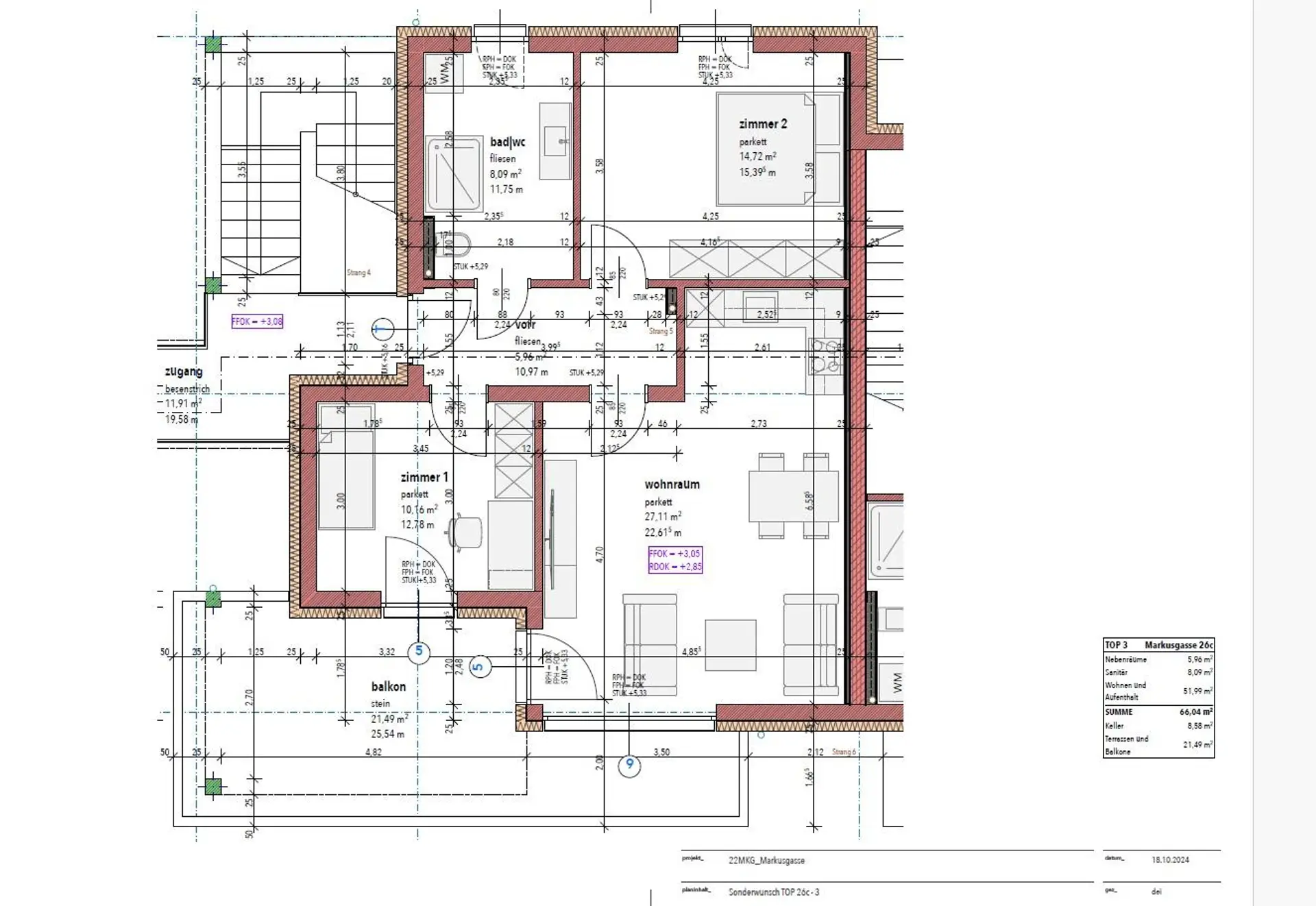 Ein Tiefgaragenplatz um EUR 27.500,- ist zusätzlich zu erwerben. Weitere Tiefgaragenplätze können je nach Verfügbarkeit erworben werden.
