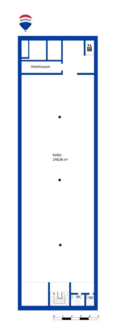 Das Untergeschoss bietet zusätzlich rund 248 m² mit 3,20 m Raumhöhe. Ein Liftschacht für den Einbau eines Lastenlifts ist vorhanden – ideal für die Erweiterung des Storage-Angebots oder als großzügige Lagerfläche für Unternehmen.