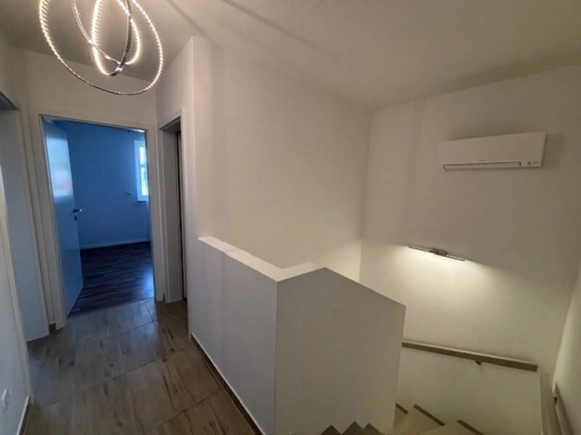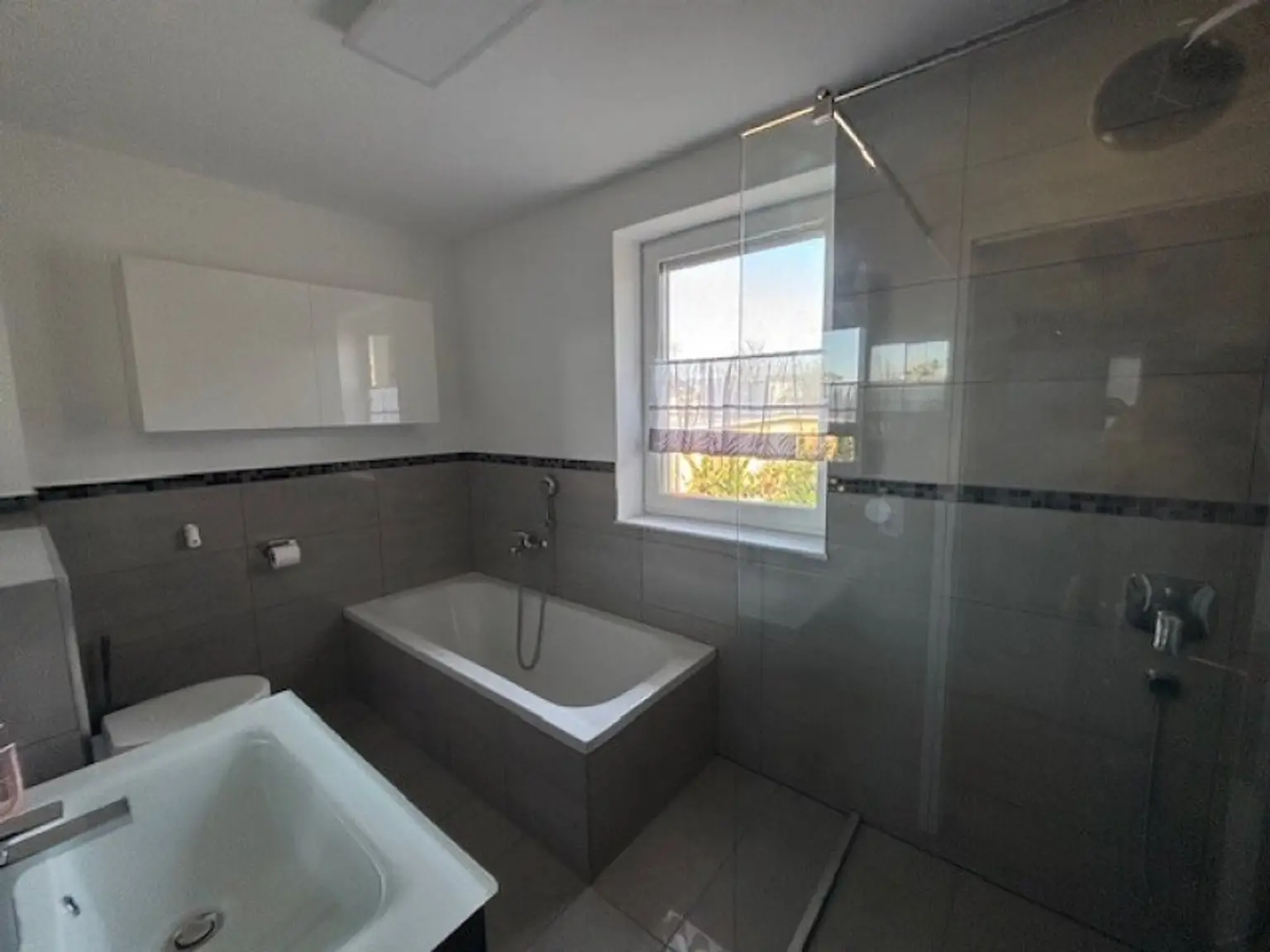 Im Obergeschoss befinden sich mehrere vielseitig nutzbare Zimmer, die sich ideal als Schlaf-, Kinder- oder Arbeitszimmer eignen. Die Räume präsentieren sich hell und freundlich und bieten ausreichend Platz für individuelle Gestaltungsmöglichkeiten. Das moderne Badezimmer ist sowohl mit einer Badewanne als auch mit einer Dusche ausgestattet und überzeugt durch zeitlose Eleganz und Funktionalität.