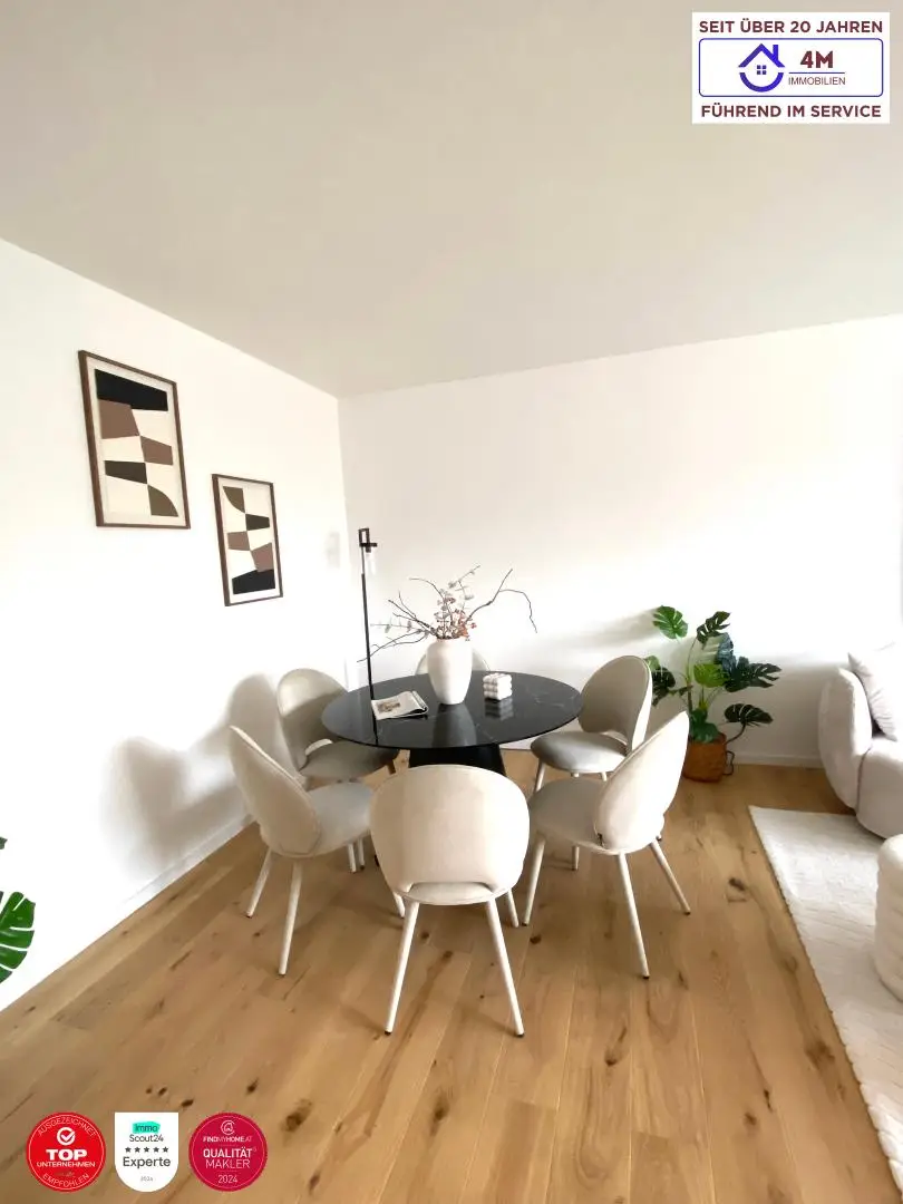 Diese helle Wohnung überzeugt durch ihre angenehme Raumwirkung und eine klare, durchdachte Aufteilung. Der offen gestaltete Wohnbereich verbindet Wohnen, Kochen und Entspannen zu einem fließenden Lebensraum modern, ruhig und lichtdurchflutet.