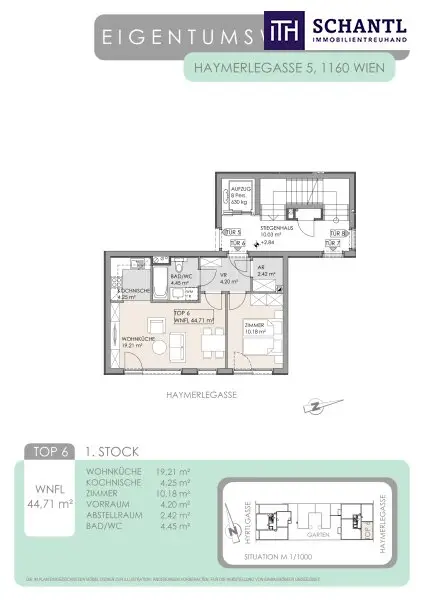 Wohnfläche: ca. 44,71m² + Kellerabteil + Garagenabteil optional
