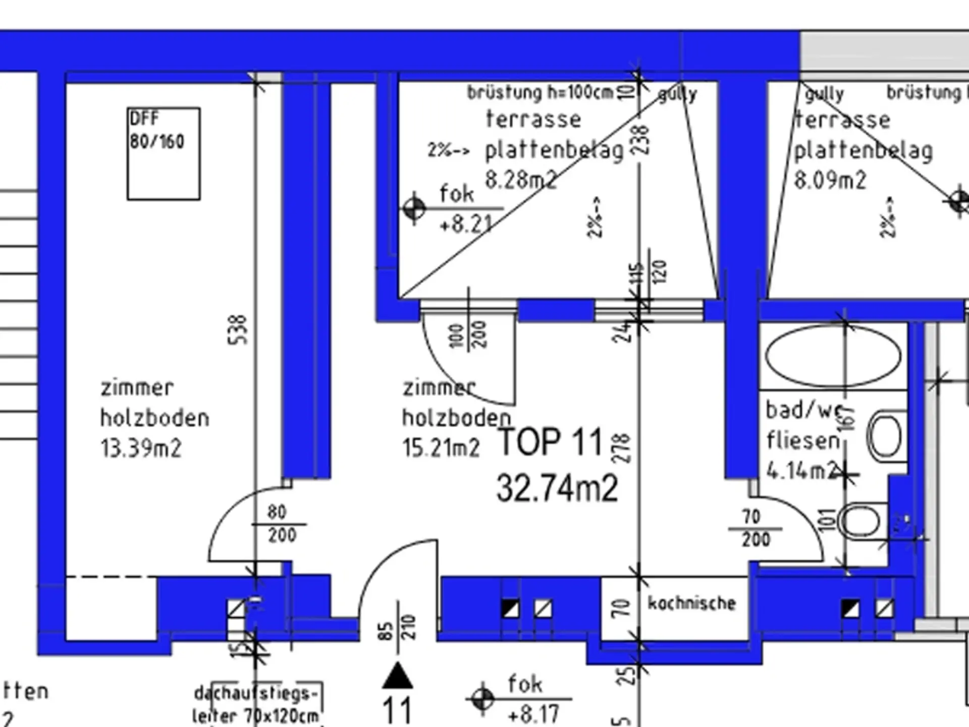 Die Raumaufteilung gliedert sich im in Wohnküche, Schlafzimmer Bad mit Badewanne und WC mit Parkettböden, beheizt wird mittels Fußbodenheizung, Hauszentralheizung.