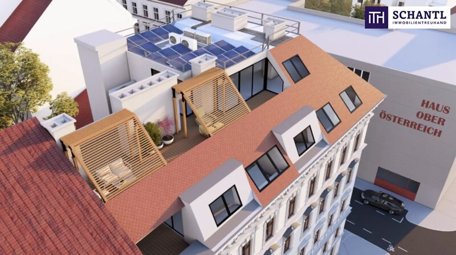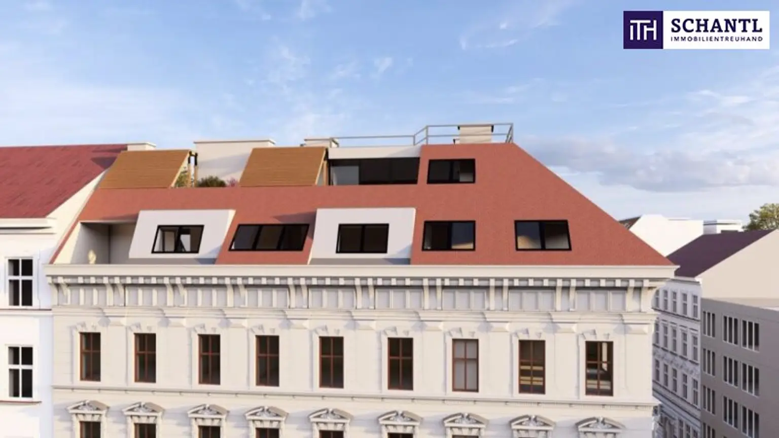 Wenn Sie nach unten schauen, liegt Ihnen die Stadt zu Füßen. Kopf hoch, und der Himmel über Wien ist zum Greifen nah. Genau so und nicht anders präsentiert sich dieses wunderbar angelegte Dachgeschoss mit all seinen Highlights. In dieser großartigen 3-Zimmer-Wohnung erwartet Sie ein zentraler Vorraum mit ausreichend Platz für die Garderobe, ein geräumiges Badezimmer mit Dusche und Fenster, zwei schöne Schlafzimmer mit ca. 18 m² und 16 m², ein separates WC mit Handwaschbecken, sowie der lichtdurchflutete, gut 36 m² große Wohn-Essbereich, mit Kochgelegenheit und Ausgang zur ca. 8,3 m² großen, sonnigen Loggia/Terrasse in Richtung Süden. Diese Wohnung ist einfach genial!