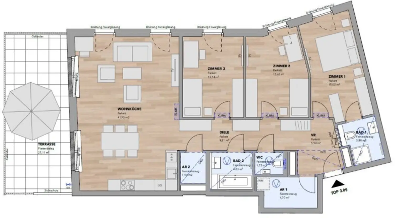 NEU - Südseitige 4-Zimmer Wohnung mit großer Terrasse - Top 3.09
