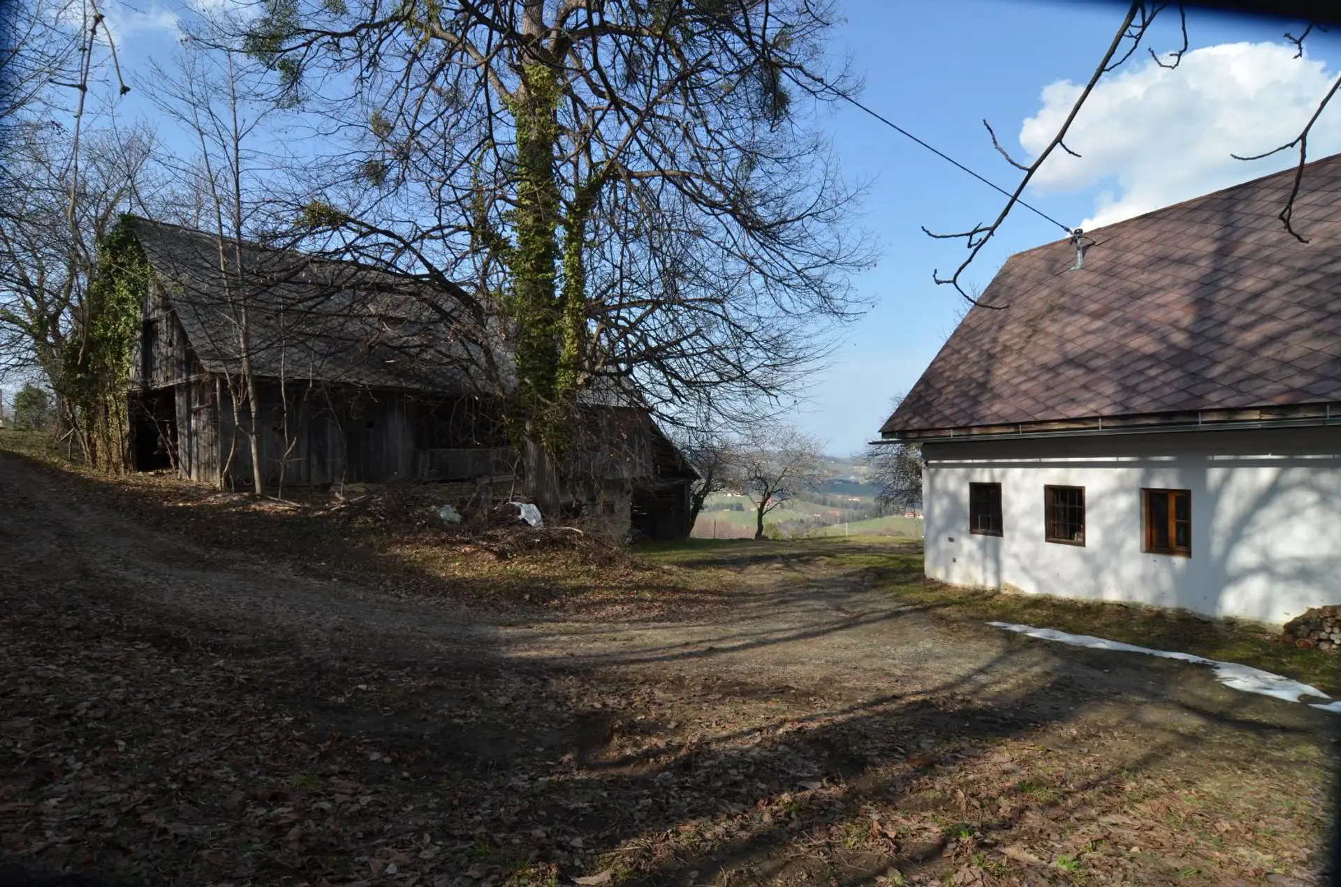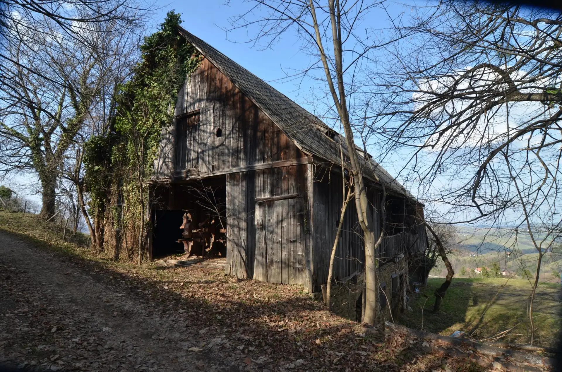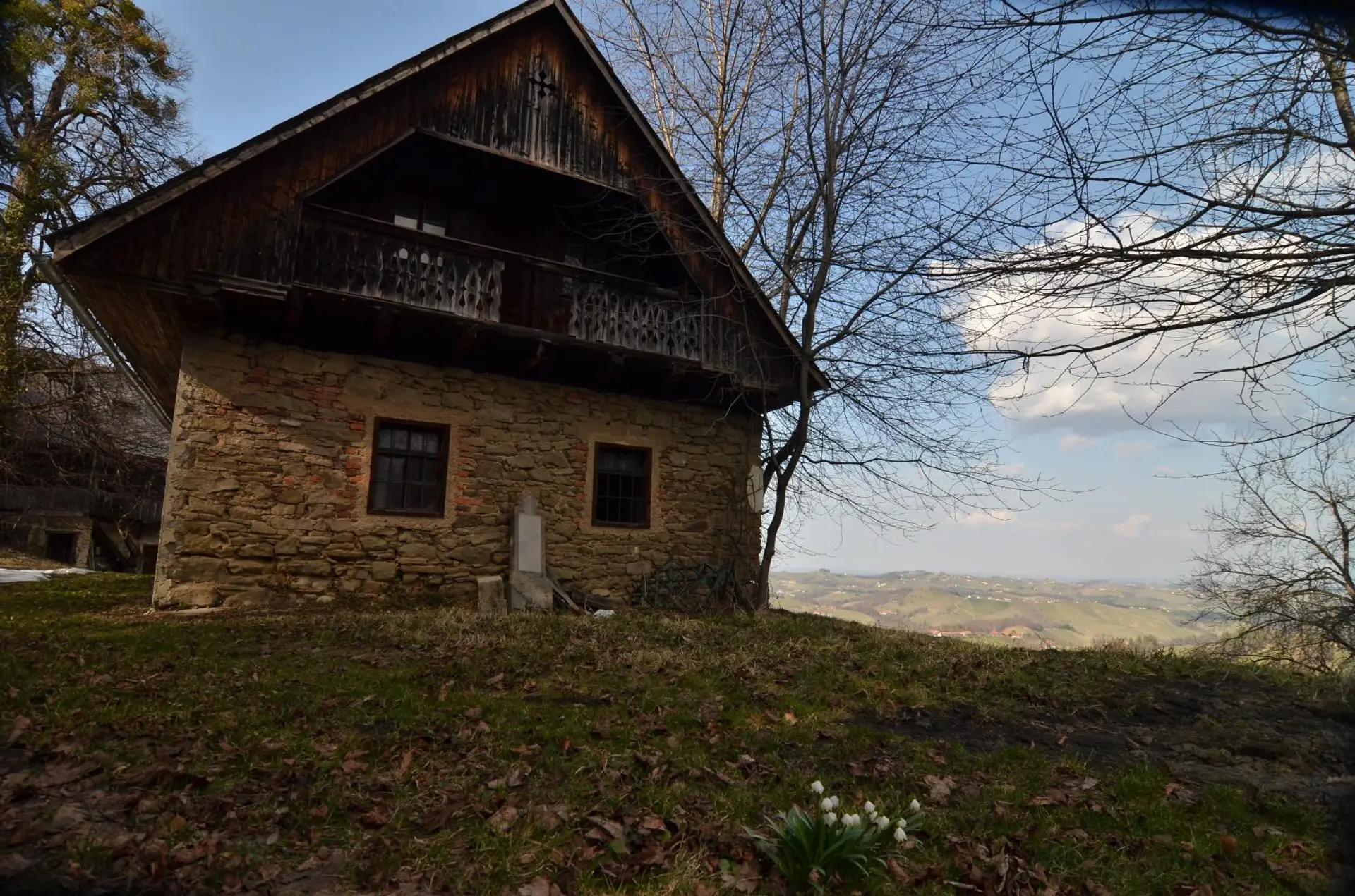 Die gegenständliche Liegenschaft mit dem Vulgo-Namen „Siebenschuster“ liegt in außergewöhnlicher Aussichtslage inmitten der sanften Weinberglandschaft der südlichen Steiermark. Auf rund 600 Metern Seehöhe eröffnet sich ein weiter Blick über die umliegenden Weinberge bis hin zum nördlichen Slowenien. Die Hofstelle befindet sich in der Gemeinde Leutschach, Ortsteil Schloßberg, unweit der Heiligen-Geist-Klamm und in unmittelbarer Grenznähe zu Slowenien.
