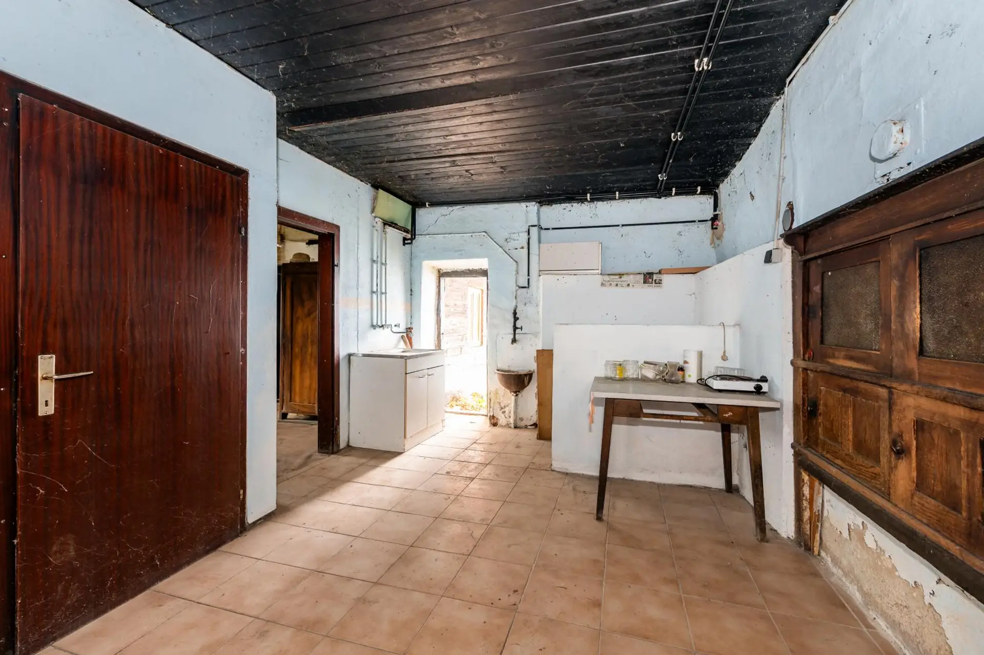 Aufgrund des hohen Alters der Gebäude sowie der Tatsache, dass die Liegenschaft über mehrere Jahre nicht genutzt wurde und keinerlei Sanierungs- oder Renovierungsmaßnahmen erfolgt sind, befindet sich der bauliche Zustand insgesamt in einem stark sanierungsbedürftigen Zustand. Ein Stromanschluss ist zwar vorhanden, jedoch ist die elektrische Infrastruktur – ebenso wie das Heizungs- und Wassersystem – nur sehr eingeschränkt nutzbar.