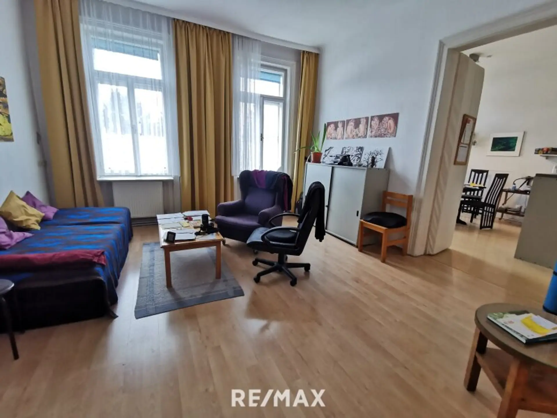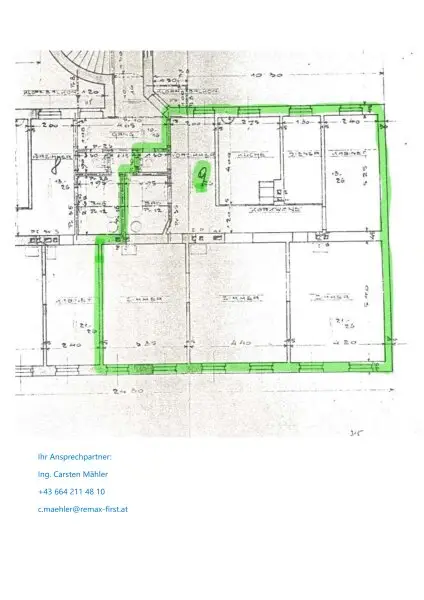 Es sind gesamt 4,5 Zimmer mit großzügigem Vorraum, 3 sehr großen Zimmern, 1 wie vor beschriebenes zum eventuellen zusammenlegen mit dem Nebenzimmer oder 2 kleinere Räume lassen (je nachdem wie Sie es nutzen wollen), Bad, WC und Abstellraum, der entweder bleibt oder der Zusammenlegung dient. Die Nutzung jetzt ist anders angelegt, als auf dem Urplan zu sehen.