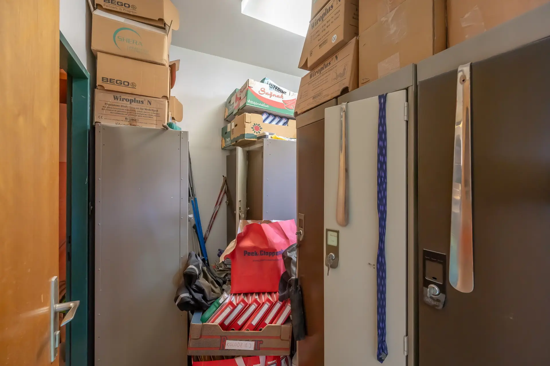 Zur Ausstattung gehören ein Badezimmer mit Dusche, zwei separate WC-Einheiten mit Waschmaschinenanschluss, eine praktische Teeküche sowie ein zusätzlicher Abstellraum. Als besonderes Extra gibt es einen eingebauten Safe, der für zusätzliche Sicherheit sorgt.
