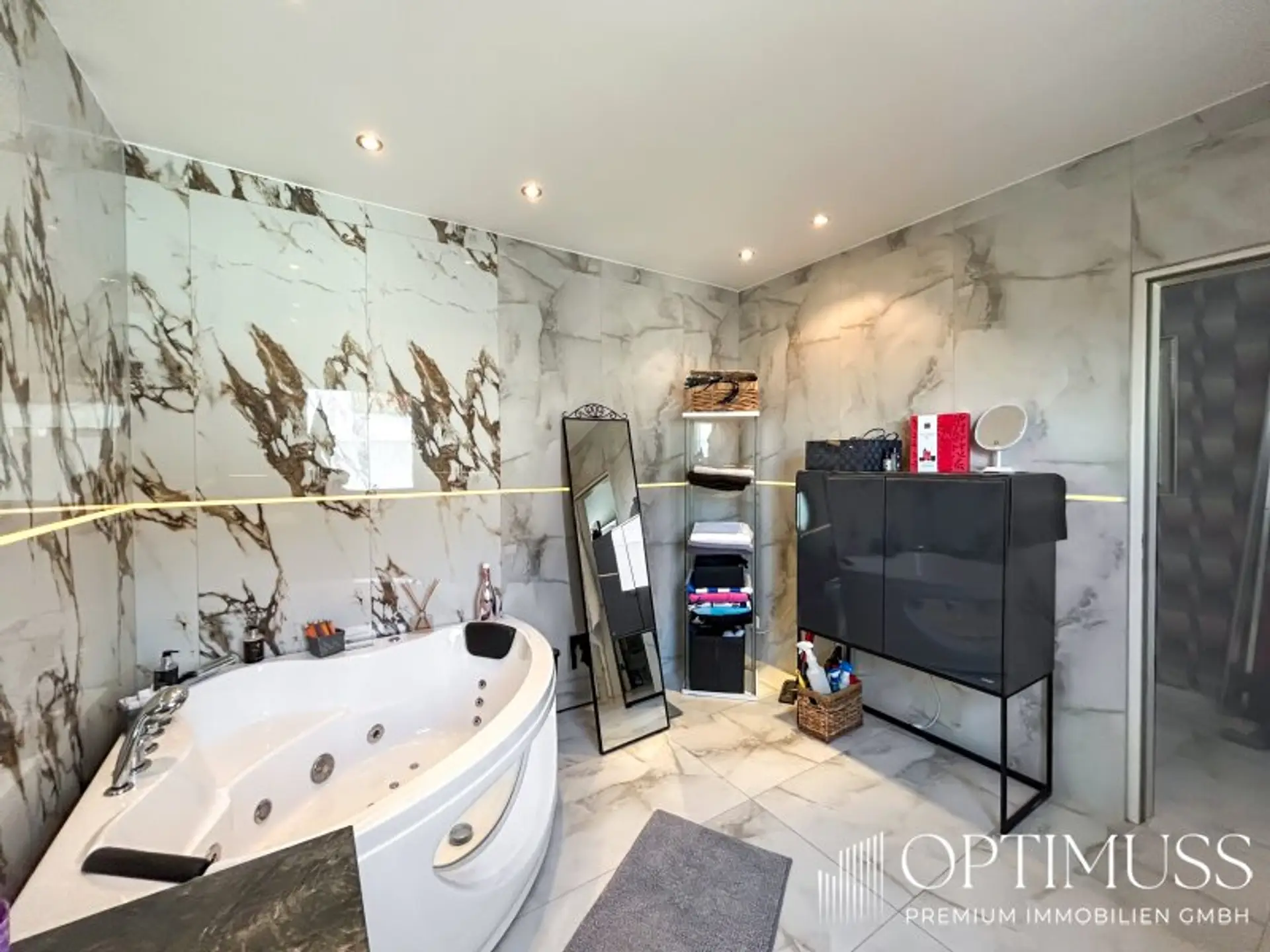 Badezimmer: ca. 8,09 m² (mit Wirlpool-Badewanne, begehbarer Dusche, Waschbecken)