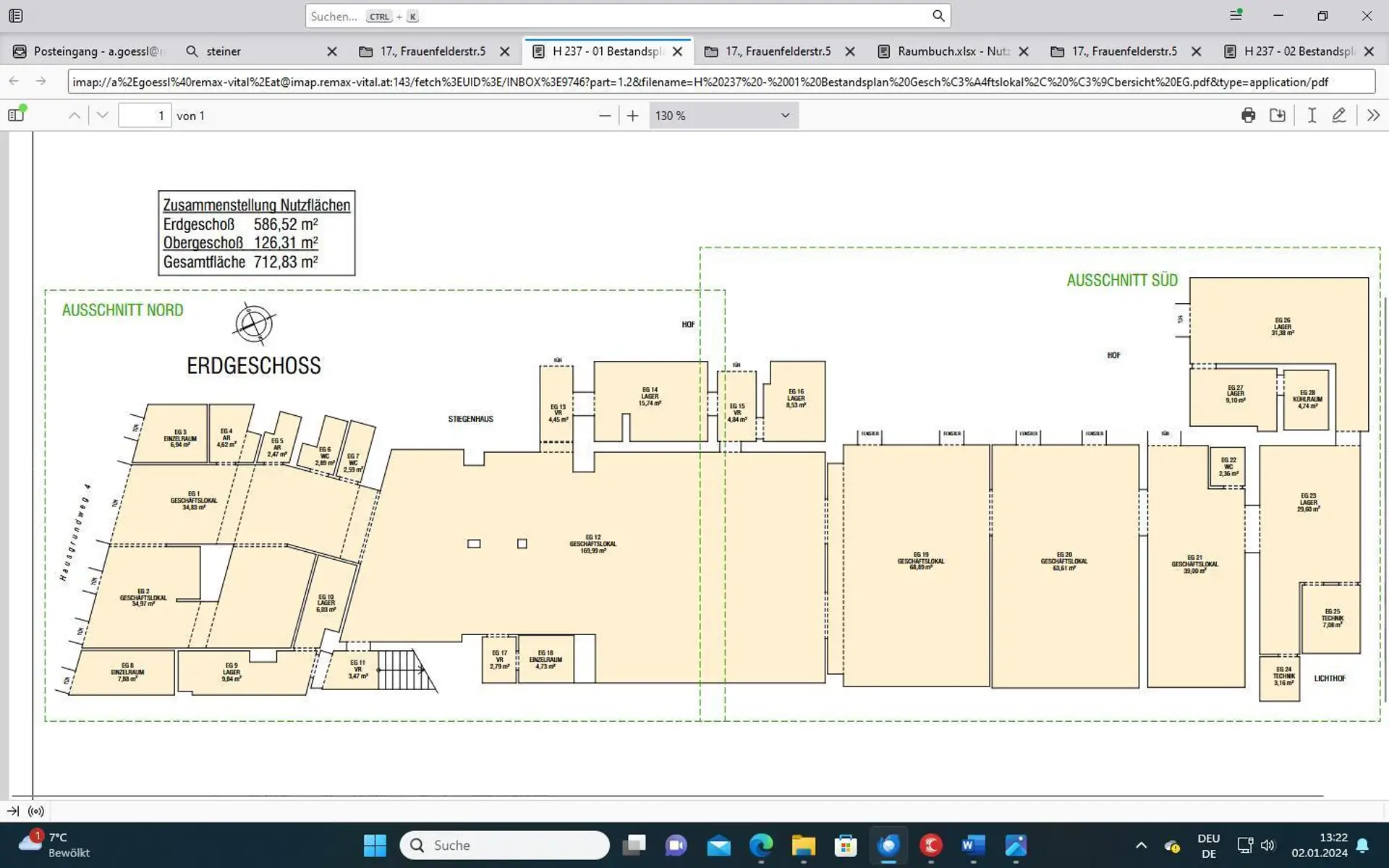 Vermietet wird ab sofort ein großzügiger Gesamtkomplex im 22. Bezirk in Wien, bestehend aus einem Geschäftslokal und mehreren Bürobereichen. (80 - 712m²)