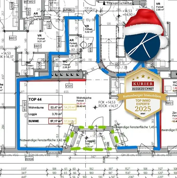* Top 44 (4.Liftstock): 2 Zimmer / 53,47 m² Wohnfläche + 3,70 m² Loggia - Kaufpreis - € 329.000,-