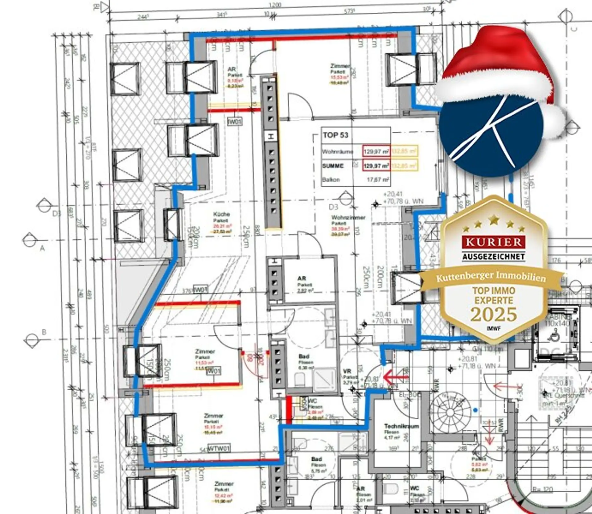 * Top 53 (2.DG): 4 Zimmer / 129,97 m² Wohnfläche + 17,67 m² Balkon + 32,34 m2 Dachterrasse - Kaufpreis - € 779.000,-