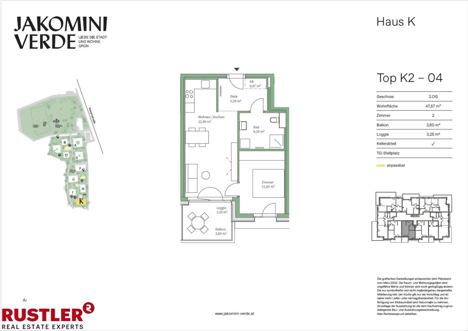 TAG DER OFFENEN TÜR am Sonntag, 19.10.2025 von 10:00-16:00 Uhr - Kommen Sie vorbei! Sonderaktion - 6 Monate betriebskostenfrei wohnen! JAKOMINI VERDE - PROVISIONSFREI Modern, hochwertig, nachhaltig - Ihr neues Zuhause im Graz-Jakomini! Entdecken Sie Ihre Traumwohnung im Wohnungsfinder!Jakomini Verde ist ein modernes und nachhaltiges Wohnprojekt im Herzen von Graz, das urbanes Leben mit einer grünen, ruhigen Umgebung vereint. Das gesamte Quartier setzt auf nachhaltige Bauweise und umweltfreundliche Energieversorgung. Durch eine Wasser/Wasser-Wärmepumpe wird das Gebäude effizient beheizt. Zusätzlich wird Fernwärme zur Warmwasserbereitung genutzt, wodurch die Wohneinheiten in den kalten Monaten optimal beheizt und in den heißen Sommermonaten angenehm temperiert werden. Highlights - Moderne Architektur – Lichtdurchflutete Räume, bodentiefe Fenster - Freiflächen für jede Wohnung – Balkon oder Loggia inklusive - Hochwertige Ausstattung – Parkett, Fußbodenheizung, 3-fach-Verglasung - Nachhaltiges Energiekonzept – Wärmepumpe, Fernwärme, PV-Anlage (Mieterstrommodell) - Top-Infrastruktur – Öffis, Einkaufsmöglichkeiten, Naherholung in direkter Nähe - Fahrradfreundlich – direkte Anbindung an das Radwegenetz - Komfort & Barrierefreiheit – Lift, stufenloser Zugang, Tiefgarage verfügbar Wohnungsbeschreibung: Die Top K2-04 ist ca. 47,57 m² groß, befindet sich im 2. Stock und hat folgende Räumlichkeiten: - Vorraum - Wohnküche - Schlafzimmer - Badezimmer mit Dusche und WC - Balkon - Kellerabteil - Tiefgaragenplatz (optional)Lage und Infrastruktur: Die Lage von Jakomini Verde könnte nicht besser sein: Die Mur und der Augartenpark mit dem Augartenbad liegen praktisch vor der Tür und bieten zahlreiche Freizeitmöglichkeiten. Der Jakominiplatz ist schnell erreichbar und auch diverse Einkaufsmöglichkeiten sowie Restaurants und Cafés liegen in der Umgebung. Das Quartier ist perfekt in das Radwegenetz der Stadt eingebunden, wodurch umweltfreundliche Mobilität einfach und schnell möglich ist. Hier verbinden sich urbanes Leben und Natur zu einem idealen Zuhause. Beziehbar: ab sofort Überzeugen Sie sich im Zuge einer Besichtigung!