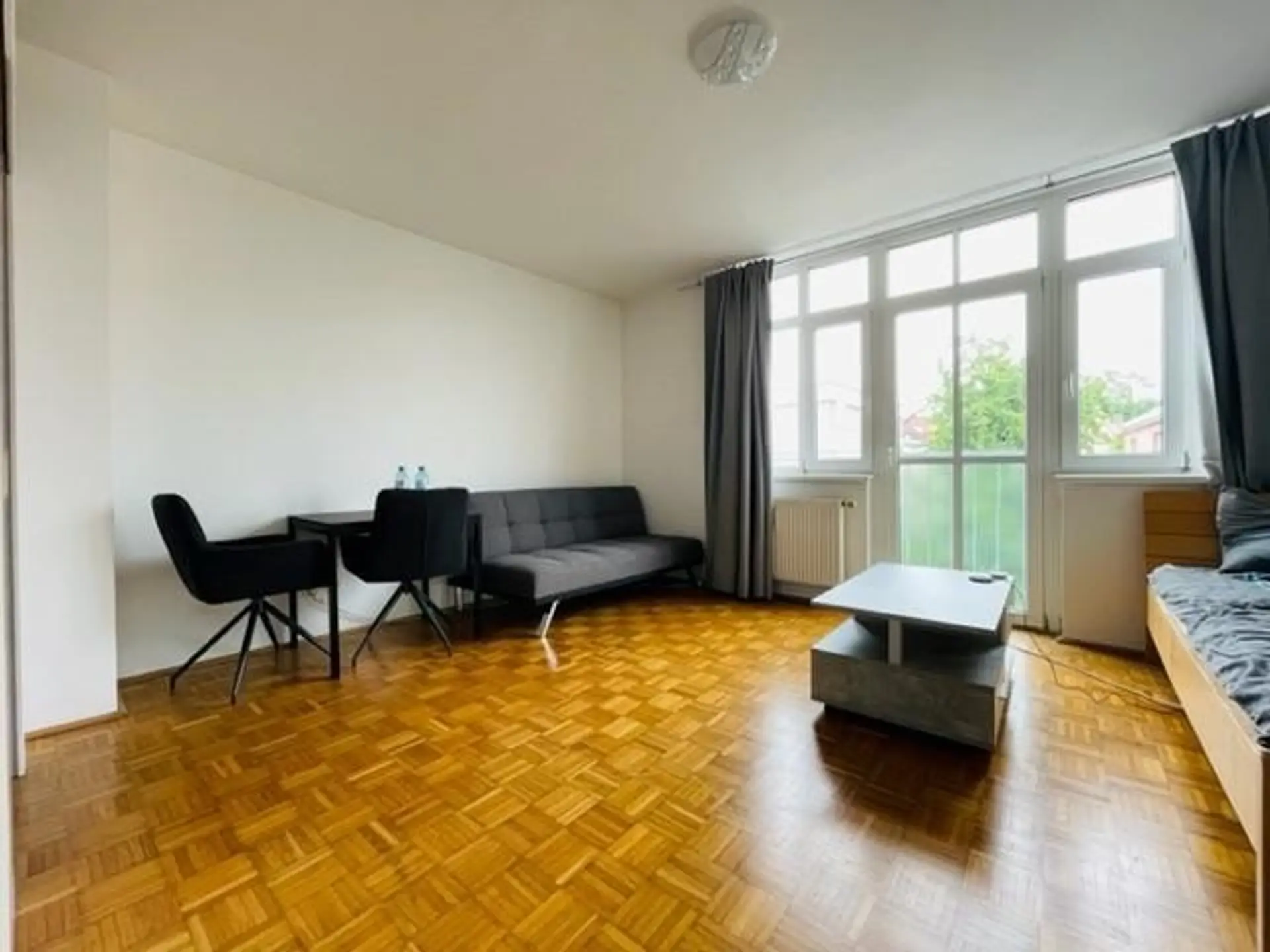 Diese im 2. OG (mit Lift!) gelegene, nette Garconniere verfügt über ca. 30,87 m² Wohnnutzfläche, die sich auf einen Vorraum, einen Wohn- Schlafraum, eine separate Küche (durch eine Schiebetür abgetrennt) mit angrenzendem kleinen Abstellraum und ein Badezimmer (mit Dusche, WC, Waschmaschinenanschluß und Waschbecken) aufteilen.