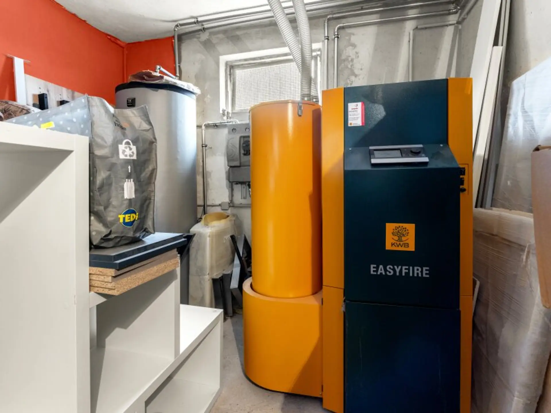 Heizung: Neue Pellet-ZH (2021) von KWB Easyfire mit neuen Außenedelstahlkamin.