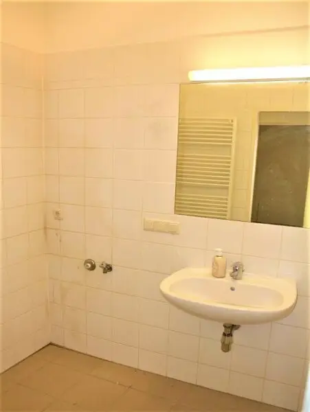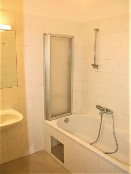 + BADEZIMMER MIT BADEWANNE, WASCHTISCH UND WASCHMASCHINENANSCHLUSS