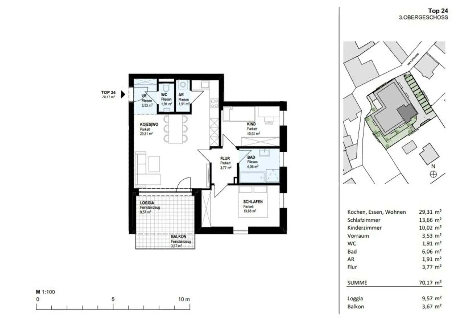 Terrassenwohnung Top 24 / 3. Obergeschoss (3.OG)