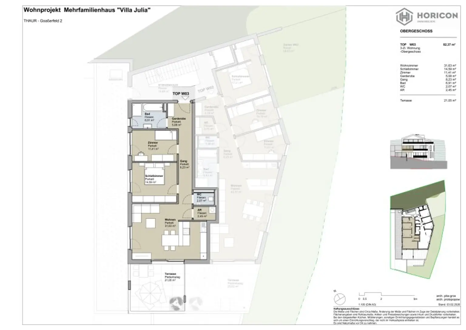 DIE OBERGESCHOSSWOHNUNG TOP W03 IM WOHNPROJEKT _VILLA JULIA _ÜBERZEUGT DURCH EINE DURCHDACHTE RAUMAUFTEILUNG, HELLE WOHNBEREICHE UND EINE PRIVATE TERRASSE.
