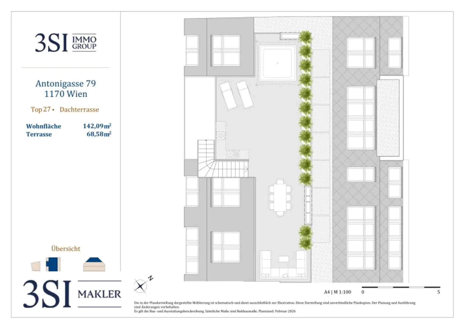 Diese traumhafte Penthousewohnung ist ein echtes Juwel und verspricht Wohnen auf höchstem Niveau. Der weitläufige Wohnbereich, durchflutet von natürlichem Licht, öffnet sich direkt zu einer herrlichen Terrasse – ein Ort, an dem Sie den Alltag hinter sich lassen und die Seele baumeln lassen können. Die vier eleganten Schlafzimmer, jedes mit einem eigenen luxuriösen Badezimmer ausgestattet, bieten Raum für Rückzug und Erholung. Die südwestliche Ausrichtung sorgt für eine warme, einladende Atmosphäre und fängt die schönsten Lichtmomente des Tages ein. Absolutes Highlight ist die atemberaubende Dachterrasse, die Ihnen einen unvergleichlichen Blick schenkt und mit vorbereiteten Anschlüssen für einen Whirlpool perfekt für unvergessliche Abende unter freiem Himmel ist. Dieses Zuhause wird Sie begeistern und Ihr Herz höherschlagen lassen.