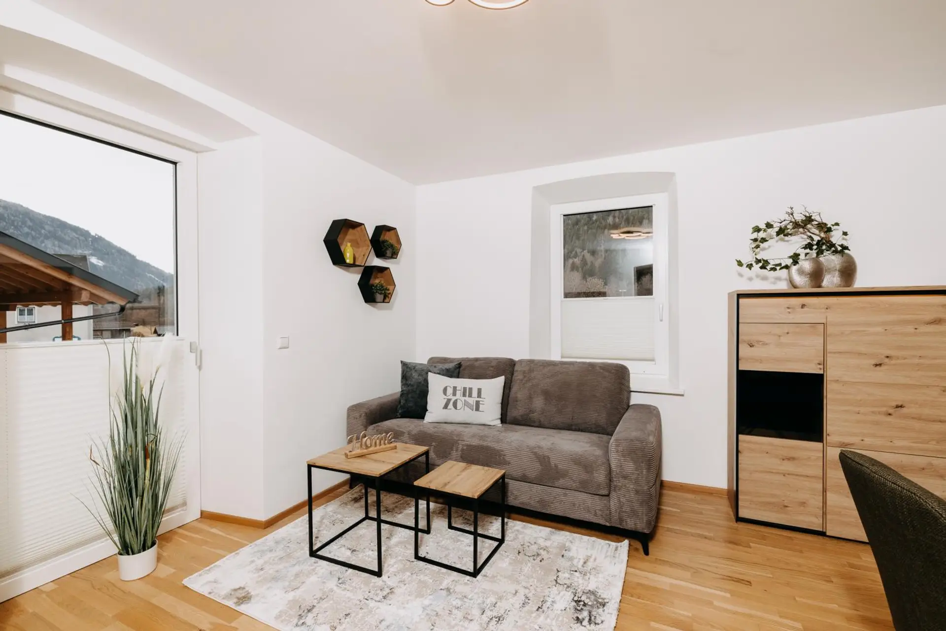 Diese charmante, hochwertig ausgestattete Ferienwohnung bietet auf rund 47 m² eine ideale Kombination aus alpinem Wohngefühl, modernem Komfort und touristischem Potenzial. Der offene Wohn- und Essbereich ist stilvoll möbliert und lichtdurchflutet – ideal für entspannte Tage und gesellige Abende nach einem Tag am Berg oder am See.