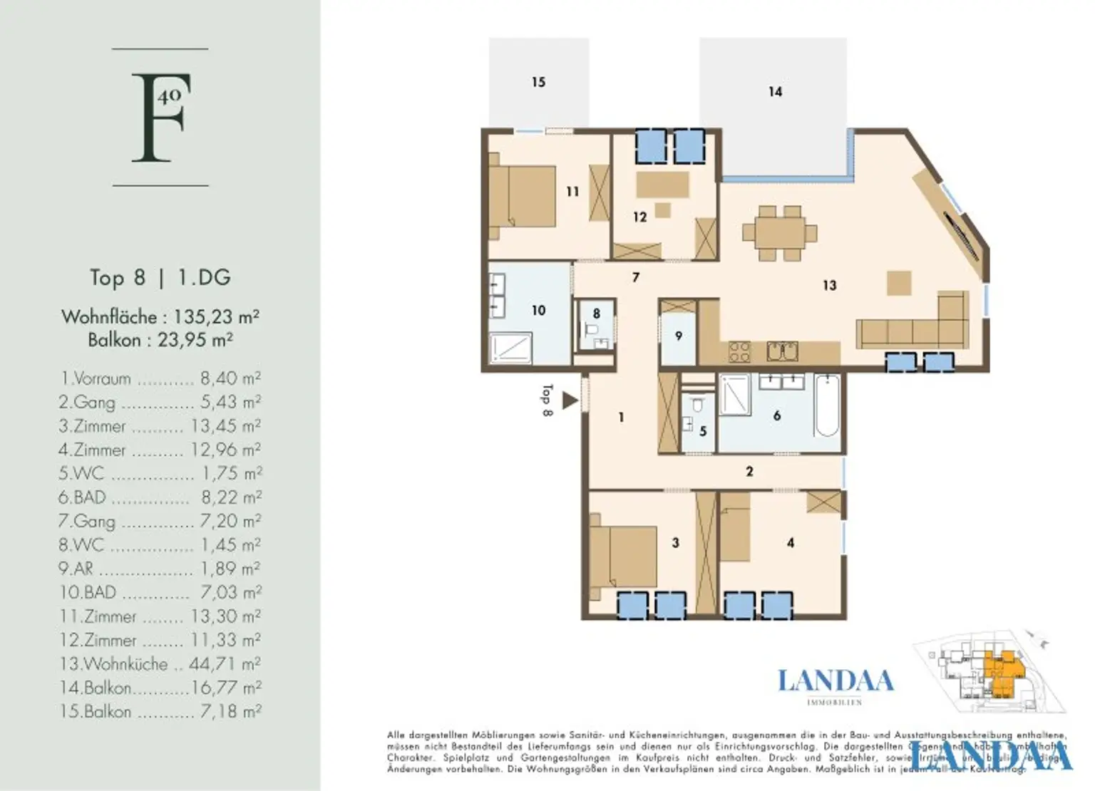 Die Wohnung Top 8 überzeugt durch eine durchdachte Grundrisslösung mit ca. 143 m² Wohnfläche und großzügigen Freiflächen.