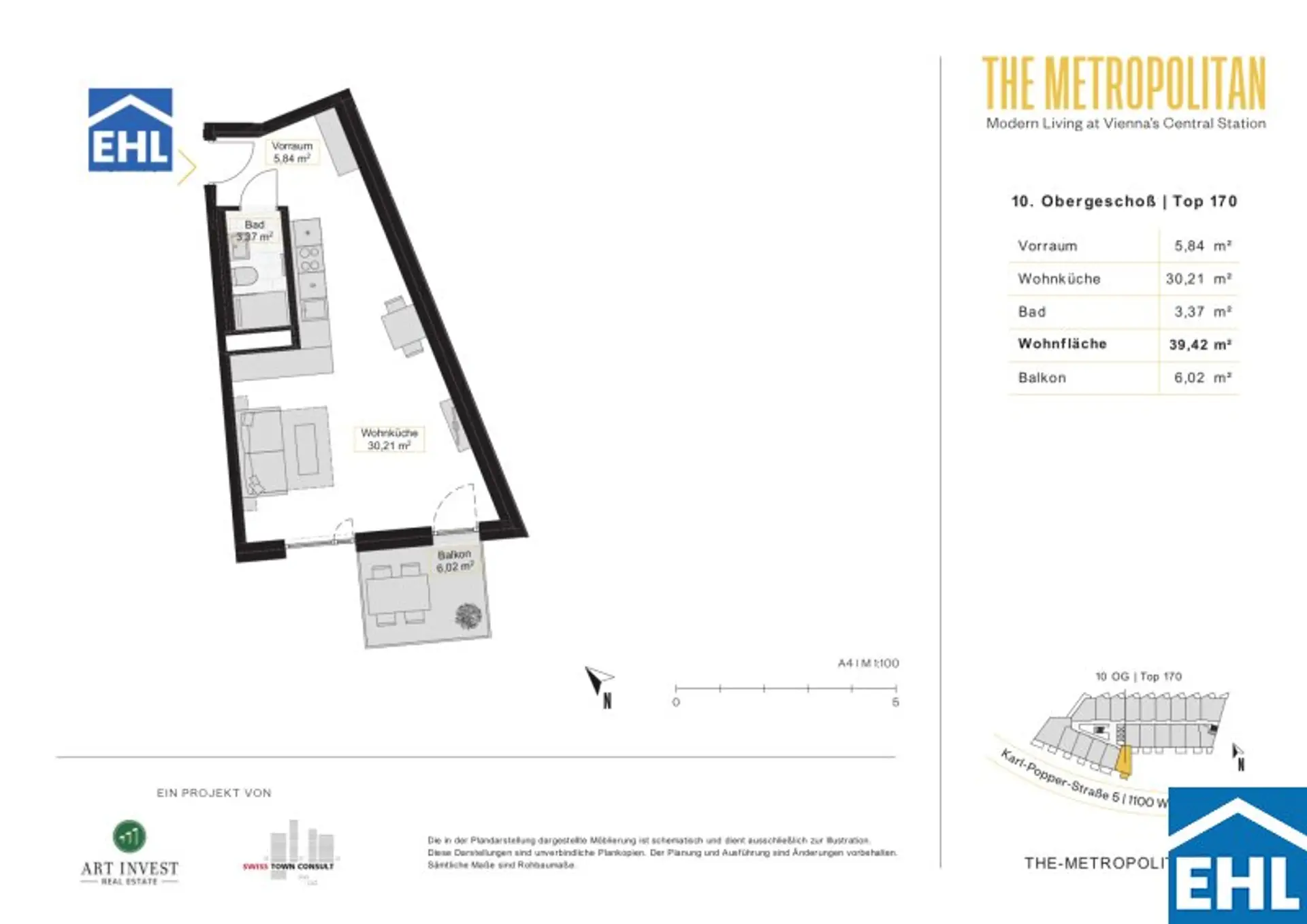 Das moderne Wohnbauprojekt „METROPOLITAN – Modern Living“ befindet sich im aufstrebenden und lebendigen Sonnwendviertel, nur wenige Gehminuten vom neu errichteten Hauptbahnhof entfernt. Die Lage bietet eine hervorragende Infrastruktur mit zahlreichen Einkaufsmöglichkeiten, Restaurants und Cafés in der Umgebung. Besonders hervorzuheben ist die Nähe zum Helmut-Zilk-Park, der Erholung und Freizeitspaß für die ganze Familie bietet.