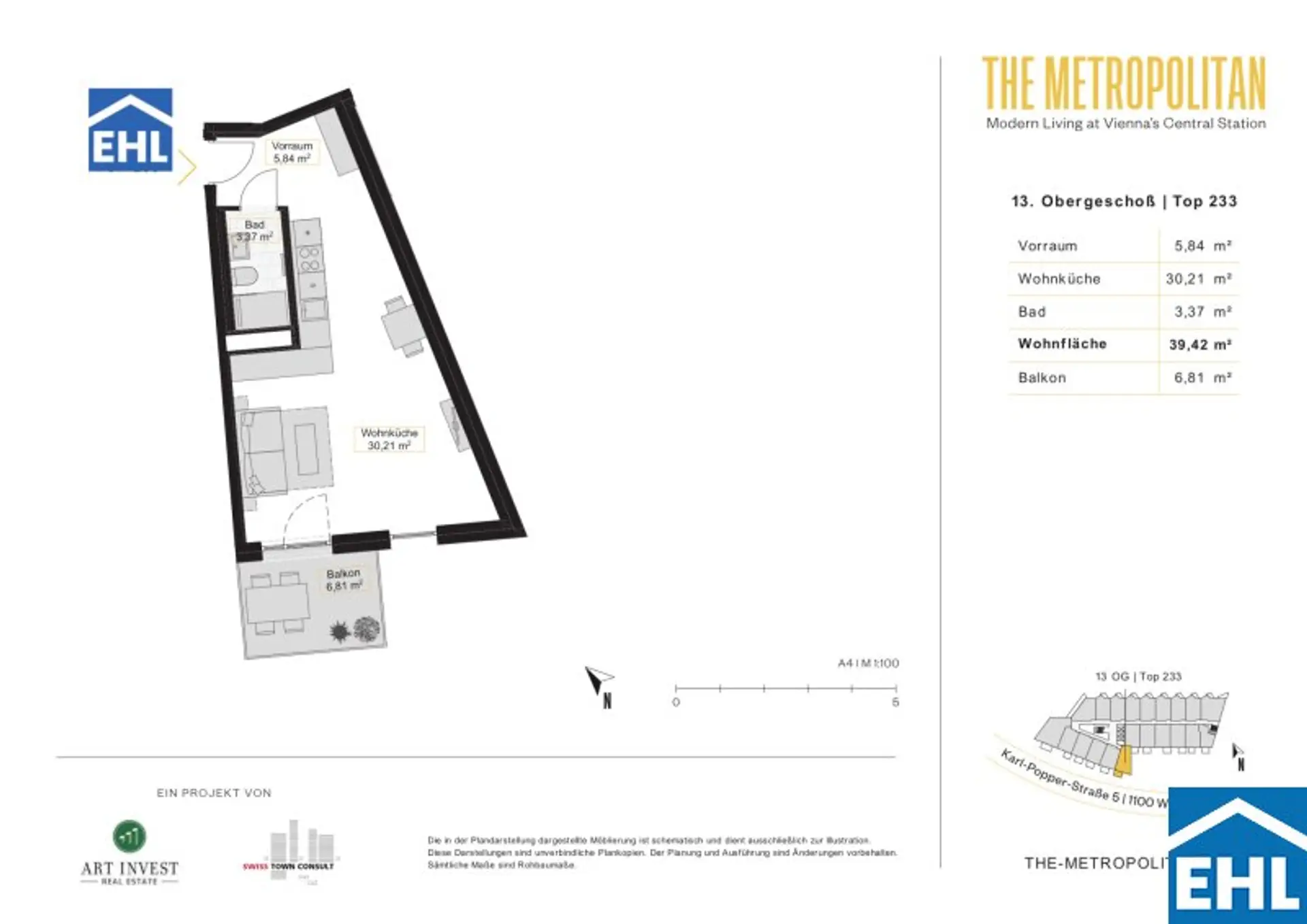 Das moderne Wohnbauprojekt „METROPOLITAN – Modern Living“ befindet sich im aufstrebenden und lebendigen Sonnwendviertel, nur wenige Gehminuten vom neu errichteten Hauptbahnhof entfernt. Die Lage bietet eine hervorragende Infrastruktur mit zahlreichen Einkaufsmöglichkeiten, Restaurants und Cafés in der Umgebung. Besonders hervorzuheben ist die Nähe zum Helmut-Zilk-Park, der Erholung und Freizeitspaß für die ganze Familie bietet.