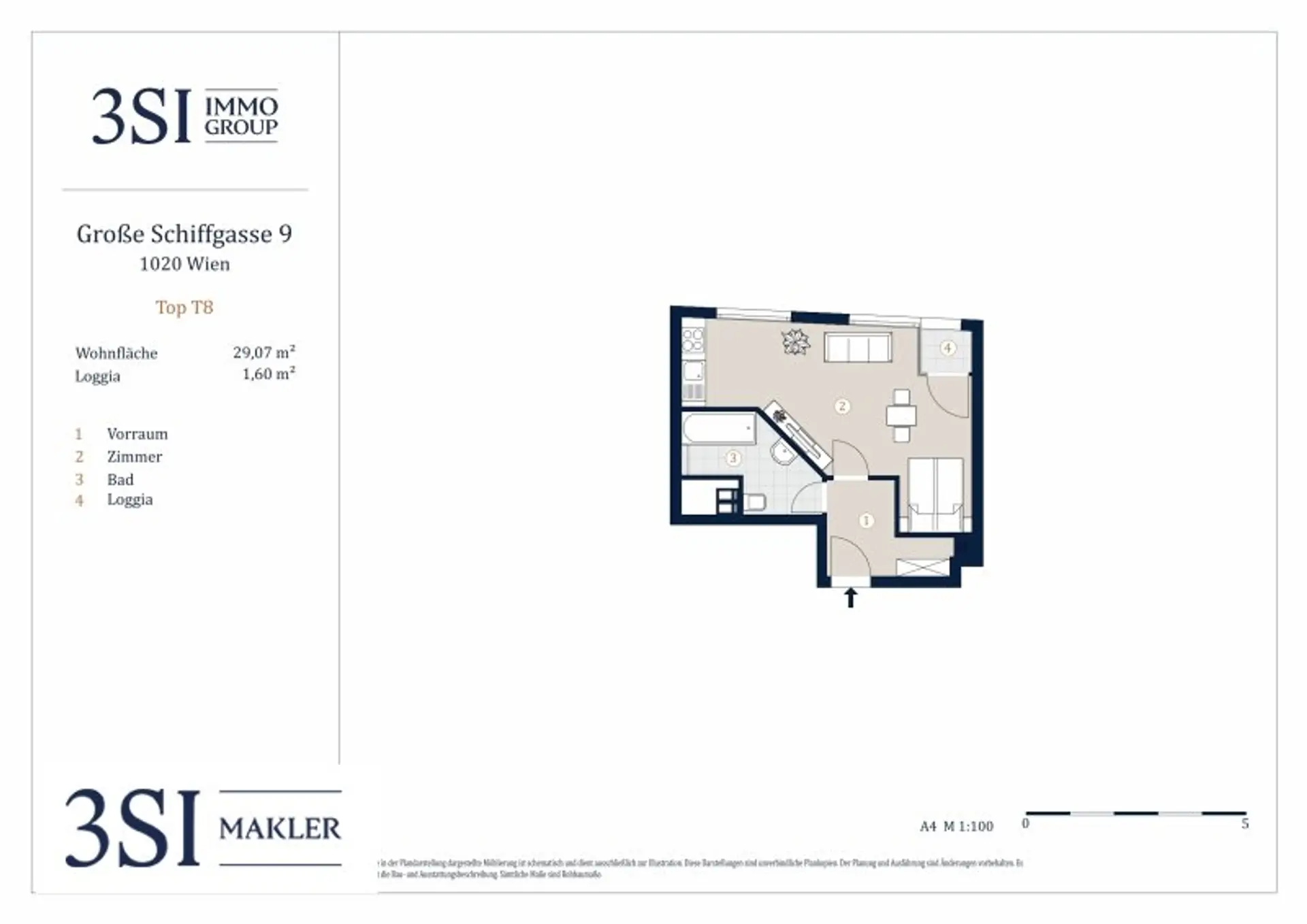 Diese frisch sanierte Wohnung besticht durch ihre moderne Ausstattung und ihren kompakten, optimal genutzten Grundriss. Der helle Wohn- und Schlafbereich schafft ein angenehmes Wohngefühl und bietet Zugang zur hofseitigen Loggia.