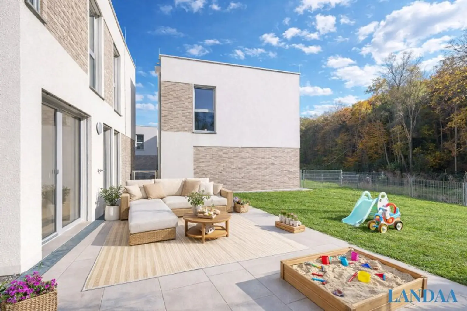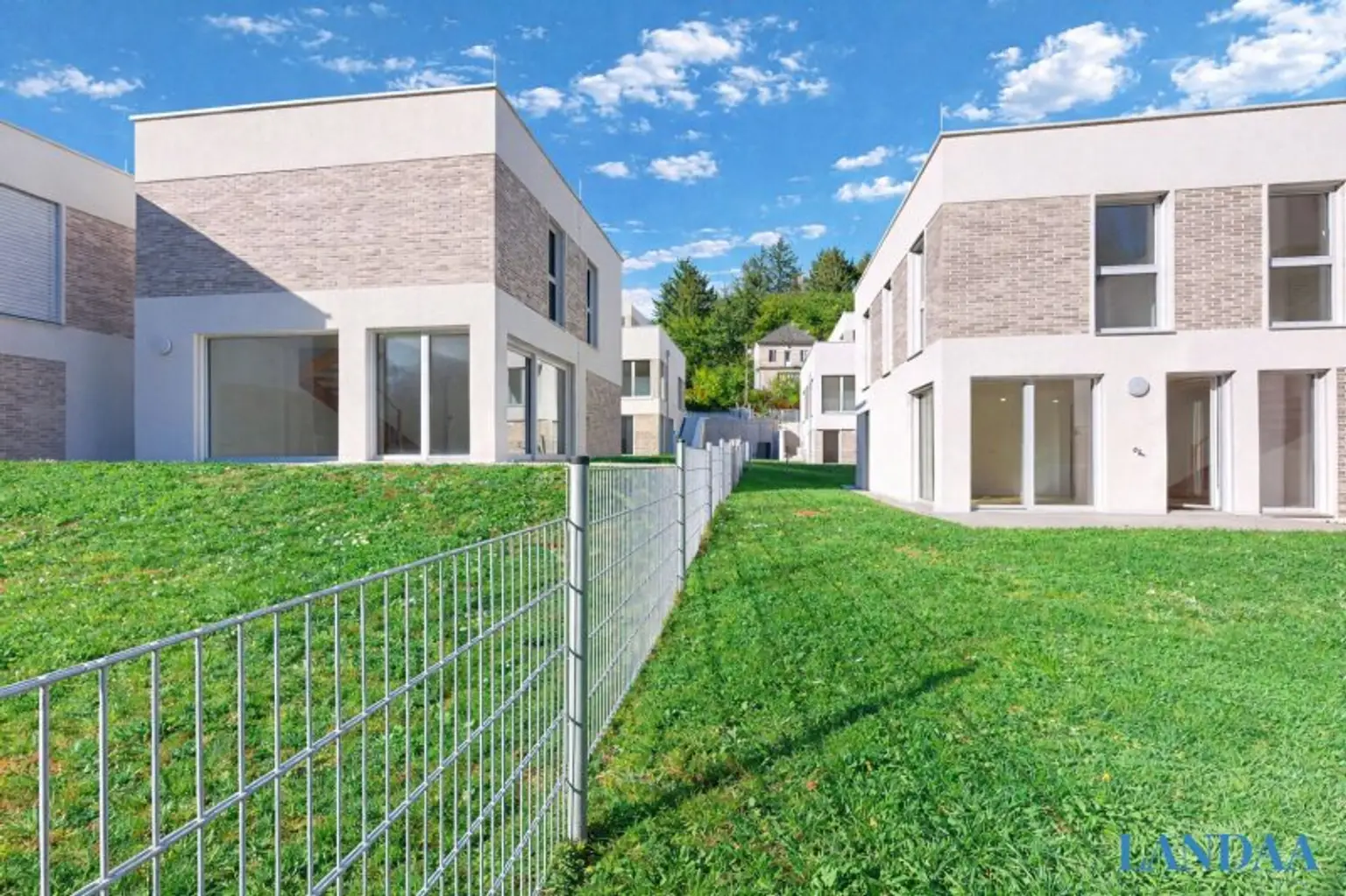 Zwischen Wienerwald und Stadt entstehen 20 Häuser, die zeitloses Design mit nachhaltiger Bauweise verbinden. Großzügige Fensterflächen, helle Räume und private Gärten schaffen ein offenes, natürliches Wohngefühl mit Blick ins Grüne.