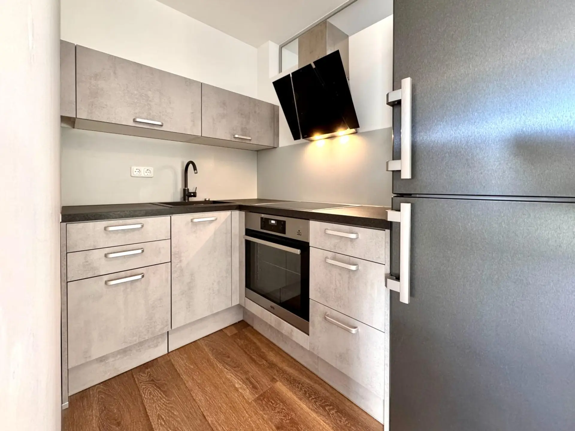 In der Wohnung befinden sich eine Küche (mit Herd, Dunstabzug, Cerankochfeld, Kühl-Gefrierschrank), ein ausziehbares Schlafsofa und eine Waschmaschine.