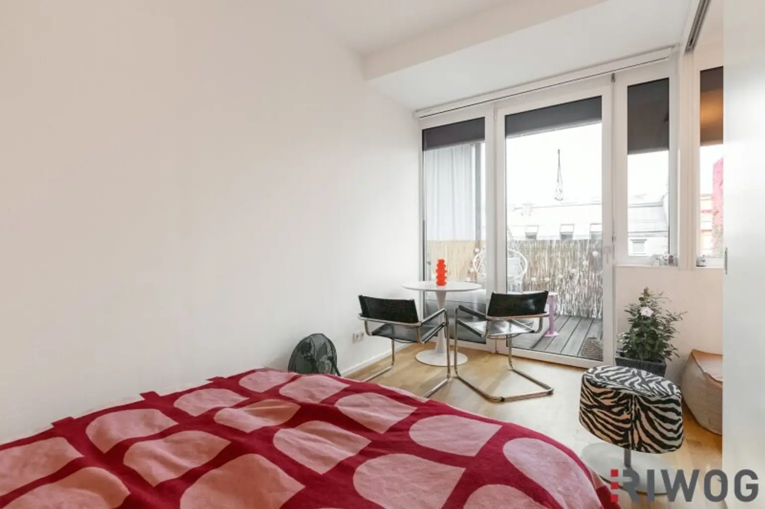 Schlafzimmer mit Schiebetür und Zugang zum Balkon