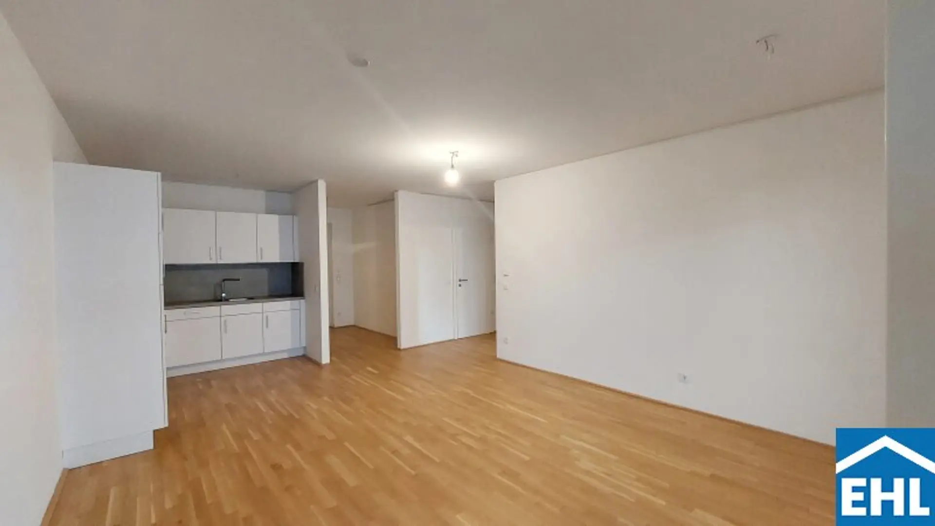 Die Wohnung selbst befindet sich im 6.Obergeschoss und gliedert sich in eine großzügige Wohnküche, ein Schlafzimmer, ein Badezimmer mit Dusche und Waschmaschinenanschluss, eine separate Toilette, sowie einen Abstellraum und einen Vorraum.