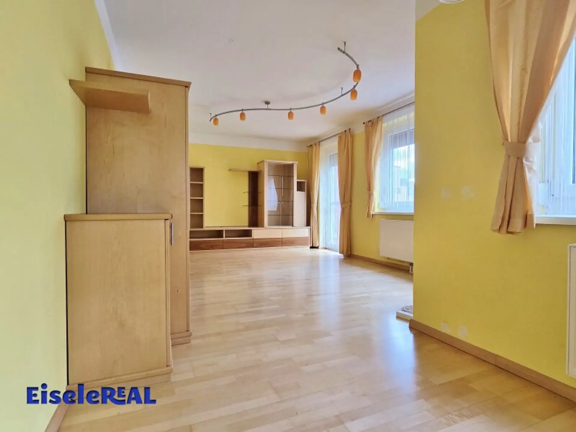 Das Wohnzimmer ist gemütlich, hier haben Sie Platz für einen Ess-, Couch- und Lebensbereich. Hier ist auch der Ausgang auf den 5m² großen Balkon in das innere der Anlage.