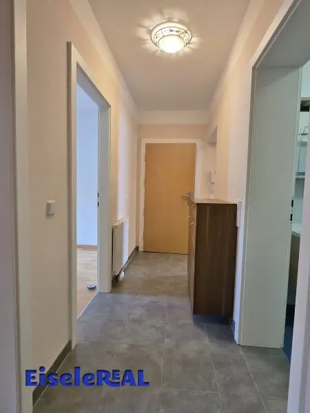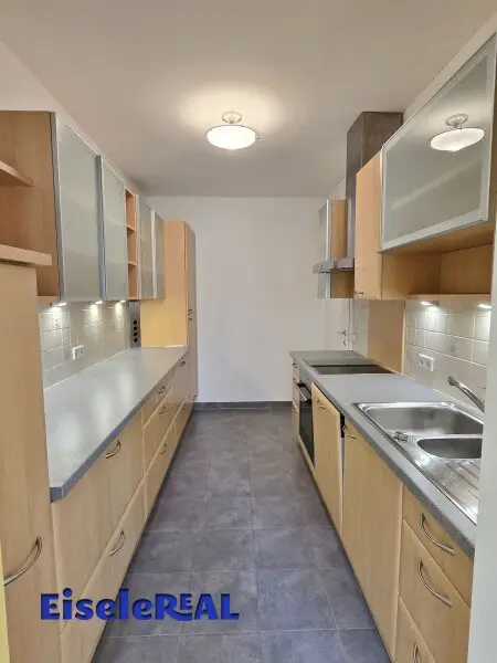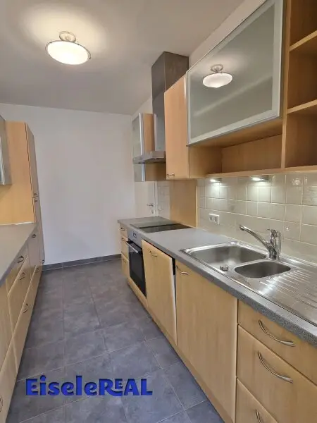 Die Wohnung liegt im 2. Stock (mit Lift) und hat eine Fläche von 75m². Vom zentralen Vorraum erreichen Sie die voll ausgestattete Einbauküche mit angeschlossenem Essbereich.