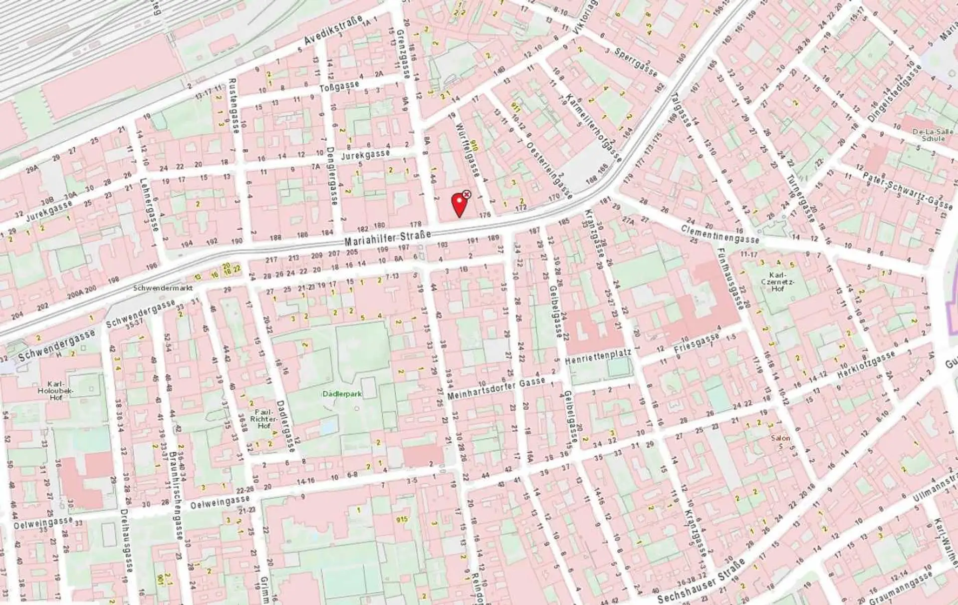 Das Bürohaus befindet sich in der verlängerten Achse der Mariahilferstraße in 1150 Wien. Das Bürogebäude zeichnet sich durch beste Lage und optimale Infrastruktur aus. Die U-Bahnlinien U4, U3, Westbahnhof, und U6 sowie die Bushaltestellen 10A und 12A befinden sich in unmittelbarer Nähe vor der Haustüre. Ebenfalls gibt es gegenüberliegend zahlreiche Einkaufsmöglichkeiten sowie auch die Haltestellen der Straßenbahnlinie 5 und 60.