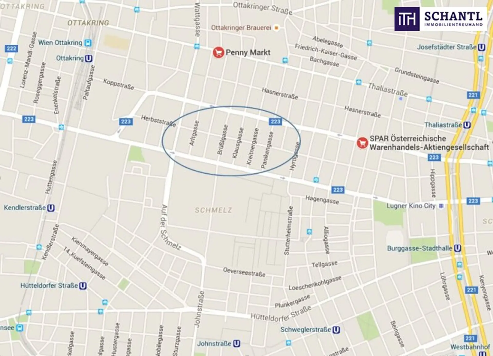 Hot Spots in der Nähe: Lugner City, Stadthalle, Stadtbibliothek, Schmelz, Brunnenmarkt, Wilhelminenberg
