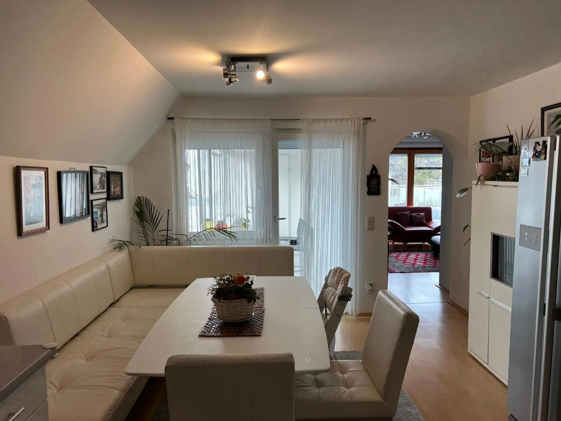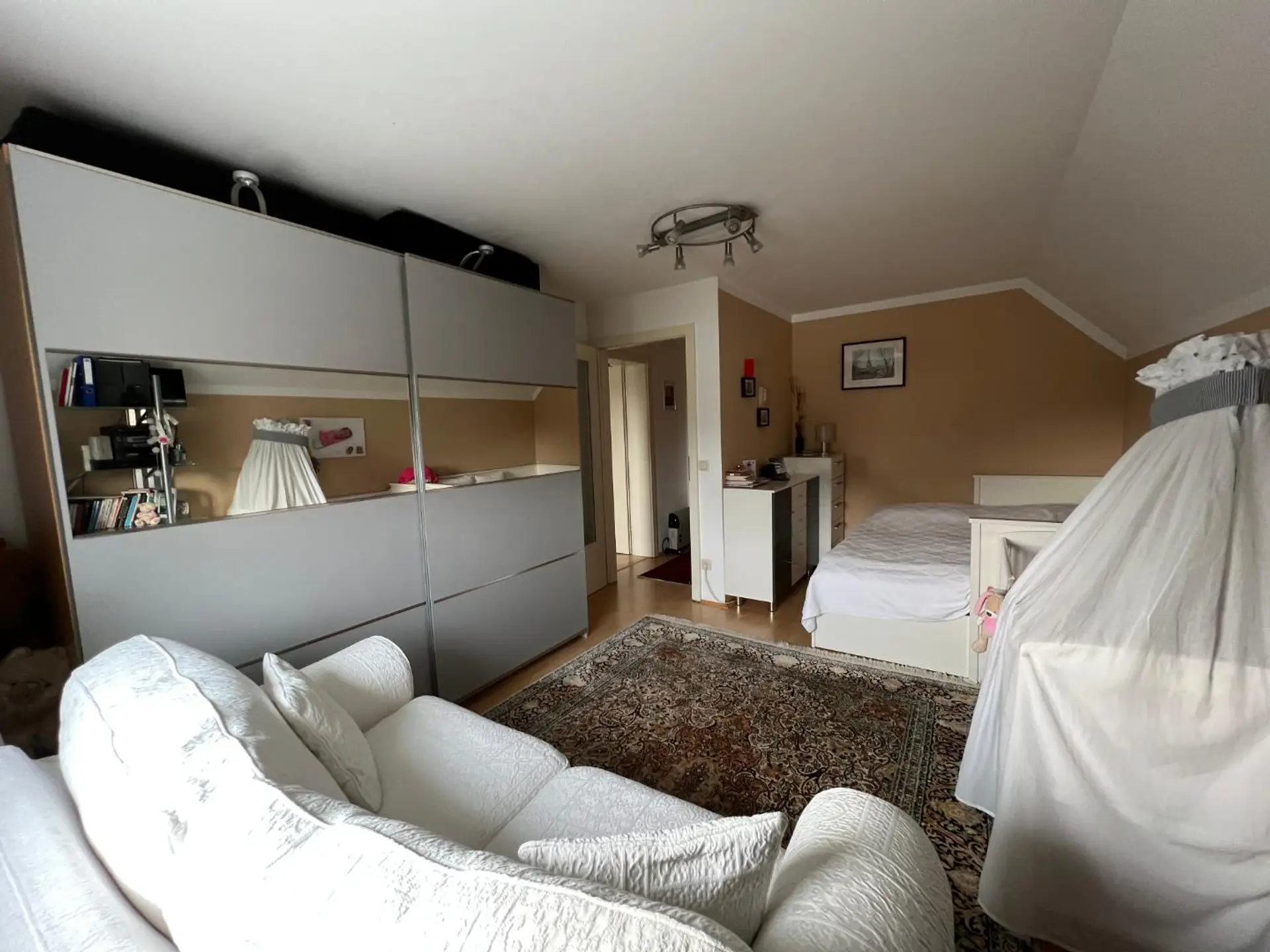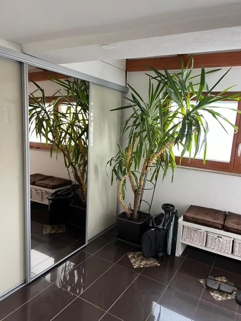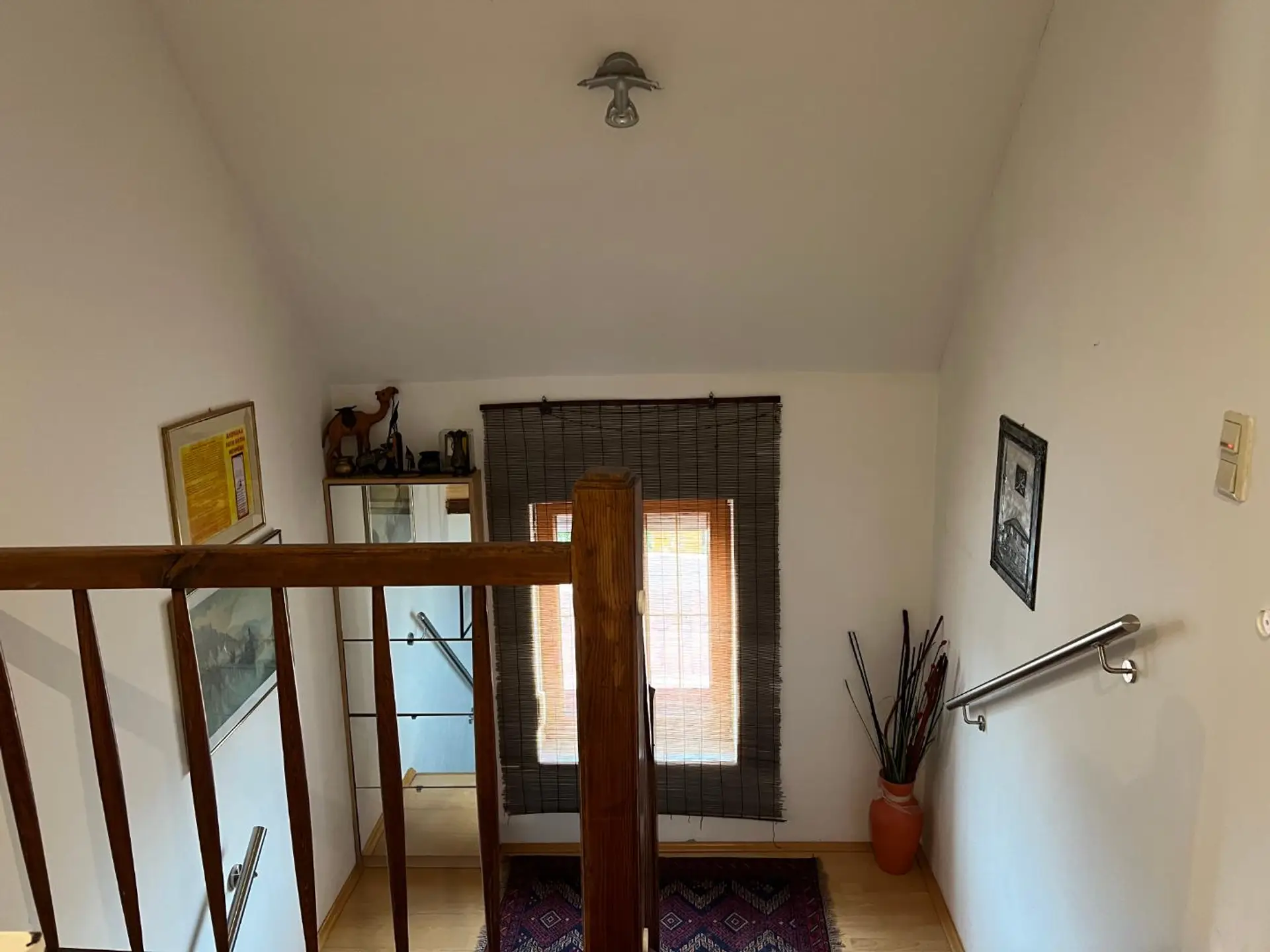 Diese voll möblierte und ausgestattete Wohnung befindet sich im 1. Stock in einem Mehrfamilienhaus in einer ruhigen Wohnsiedlung. Der Eingangsbereich zu dieser Wohnung ist im EG mit Einbauschrank. Über eine schöne Holztreppe gelangen Sie in die Diele im 1. Stock, wovon Sie die Zimmer erreichen können. Die Wohnung bietet Ihnen 2 große Schlafzimmer, 1 kleineres Schlafzimmer/Büro, 1 Badezimmer mit Wanne, WC, Bidet, Waschmaschine und Waschtisch und 1 Badezimmer mit Dusche, Wc und Waschtisch. Von der Küche mit amerikanischem Kühlschrank und große Essbereich gelangt man auf eine ca. 4,78 m2 große Loggia mit Schiebefenster und anschließendem Abstellraum. Vom ca. 25 m2 großem Wohnzimmer gelangt man auf die schöne 56 m2 große Dachterrasse. Beheizt wird das Haus mit einer Luftwärmepumpe.