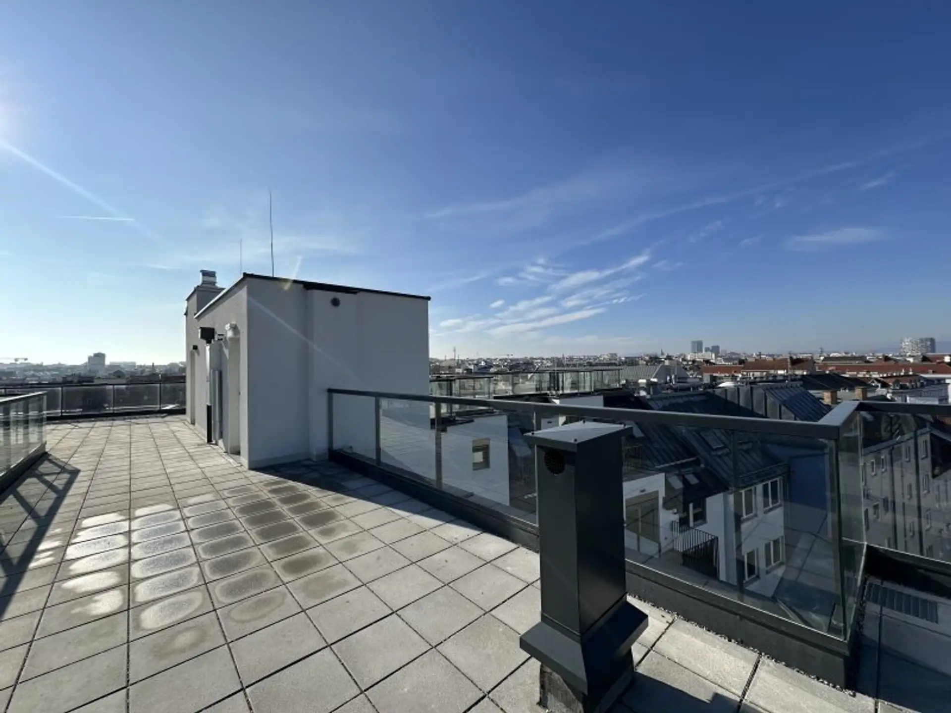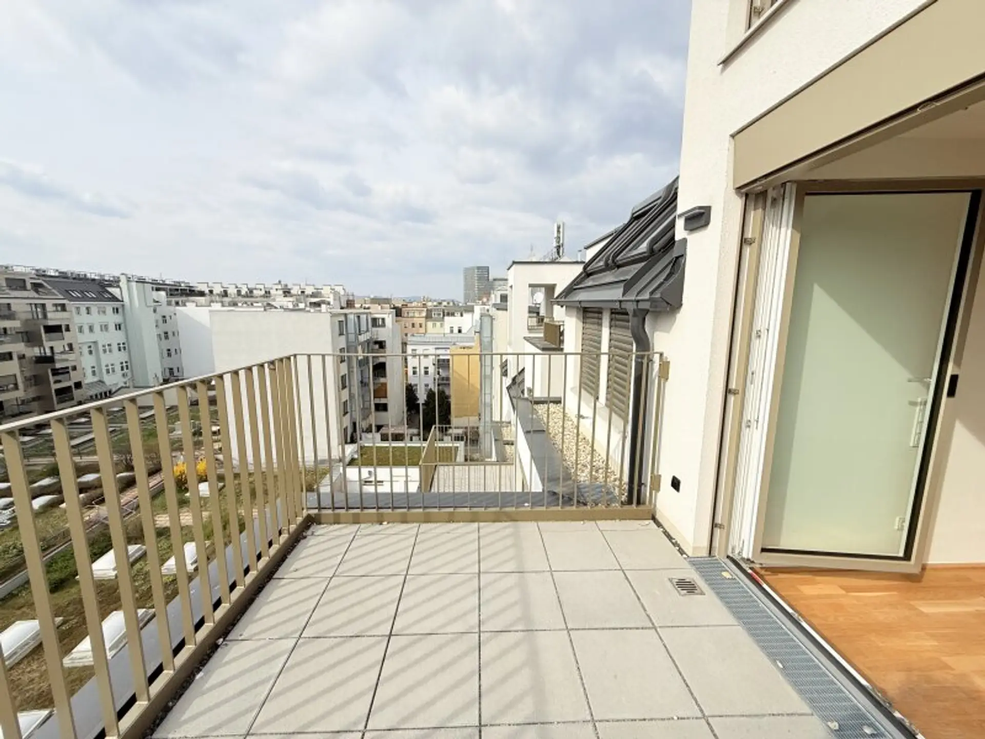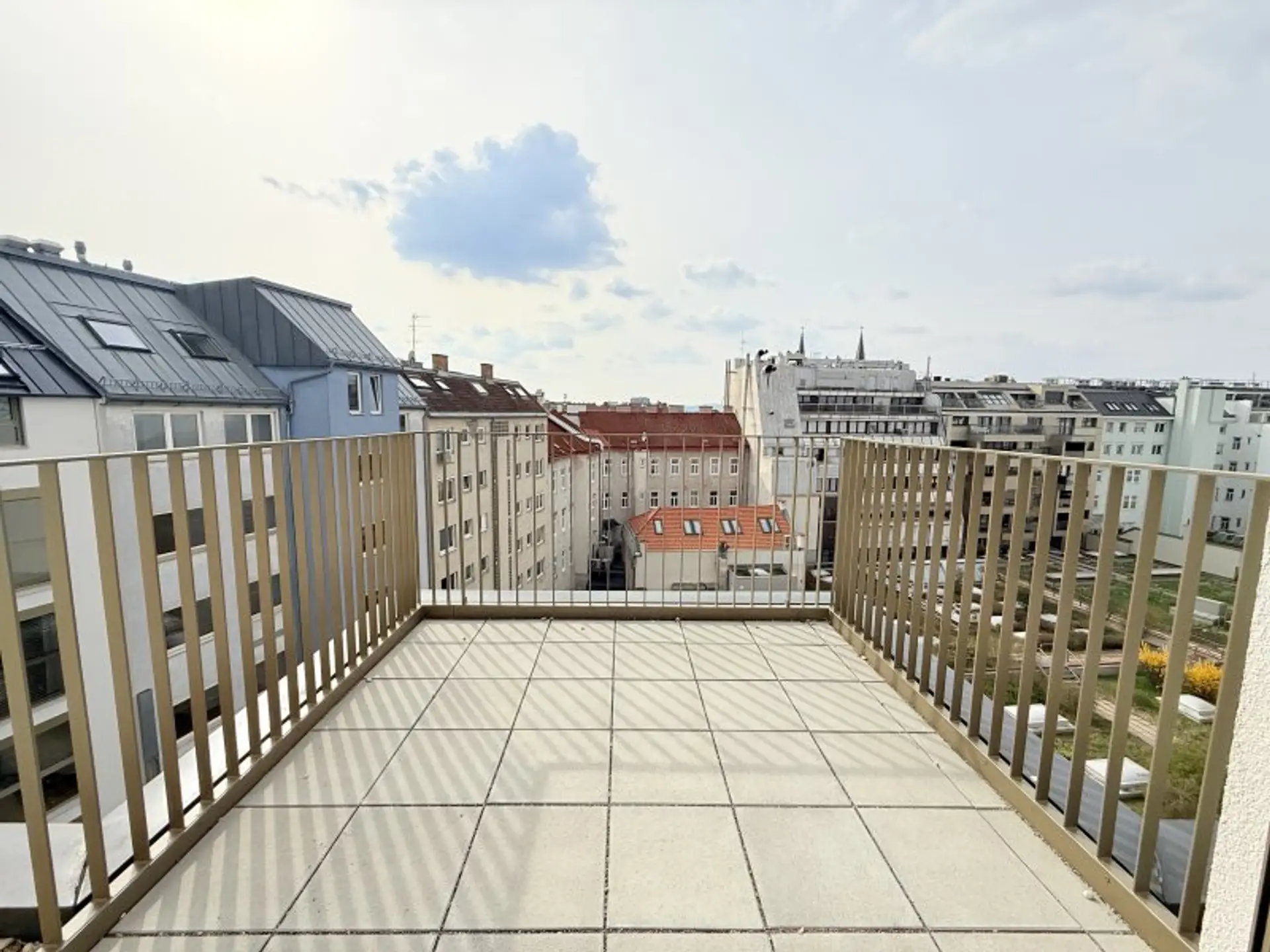 * Gemeinschaftliche Dachterrasse mit atemberaubendem Blick über Wien