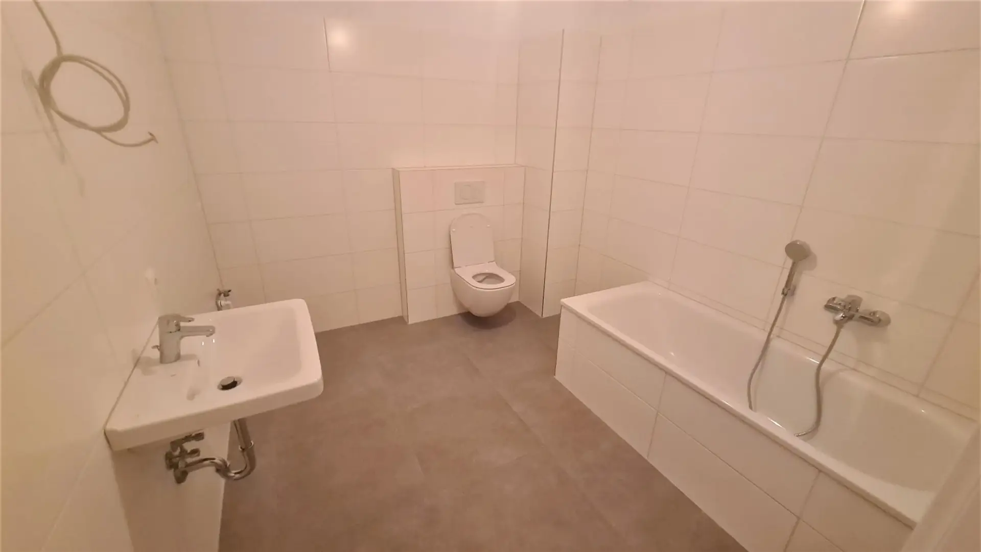 Das Bad ist großzügig dimensioniert mit Badewanne und Wc, .