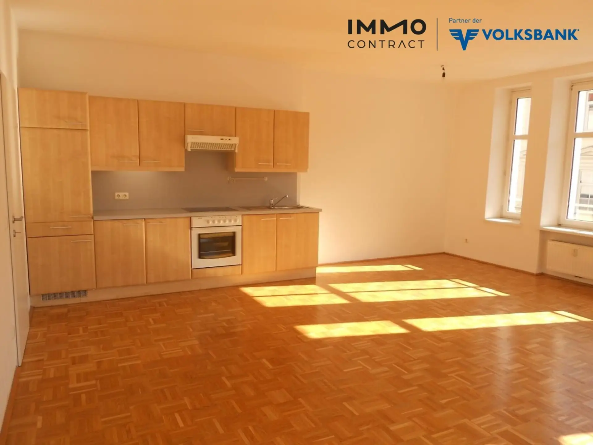 Das Objekt ist mit klassischen Parkettböden ausgestattet und verfügt über eine schöne Einbauküche. Diese ist fixer Bestandteil der Wohnung und somit ohne Ablöse.