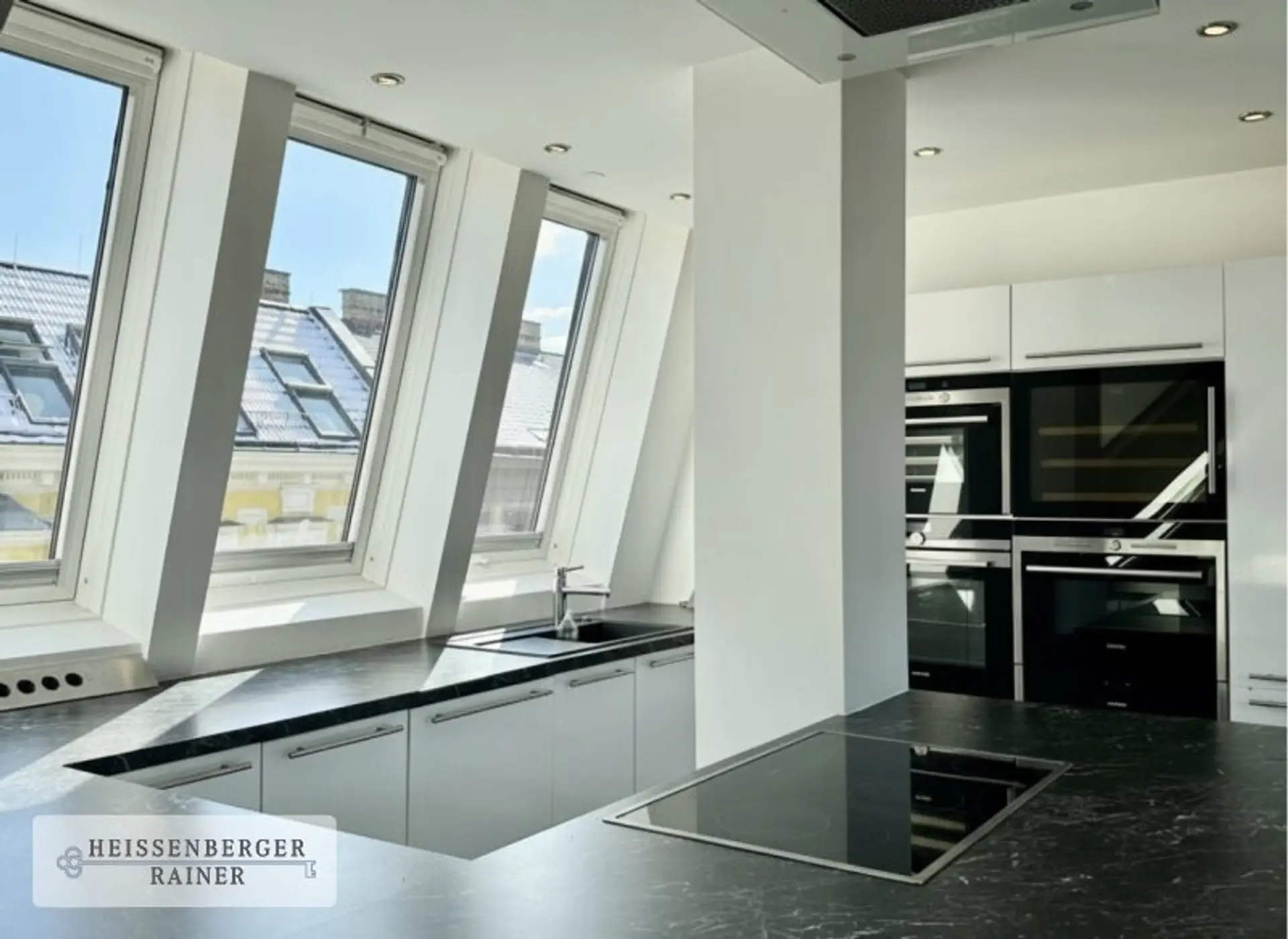 * offene Küche mit hochwertiger Ausstattung (Backofen, Dampfgarer, Weinkühlschrank, eingebaute Mikrowelle)