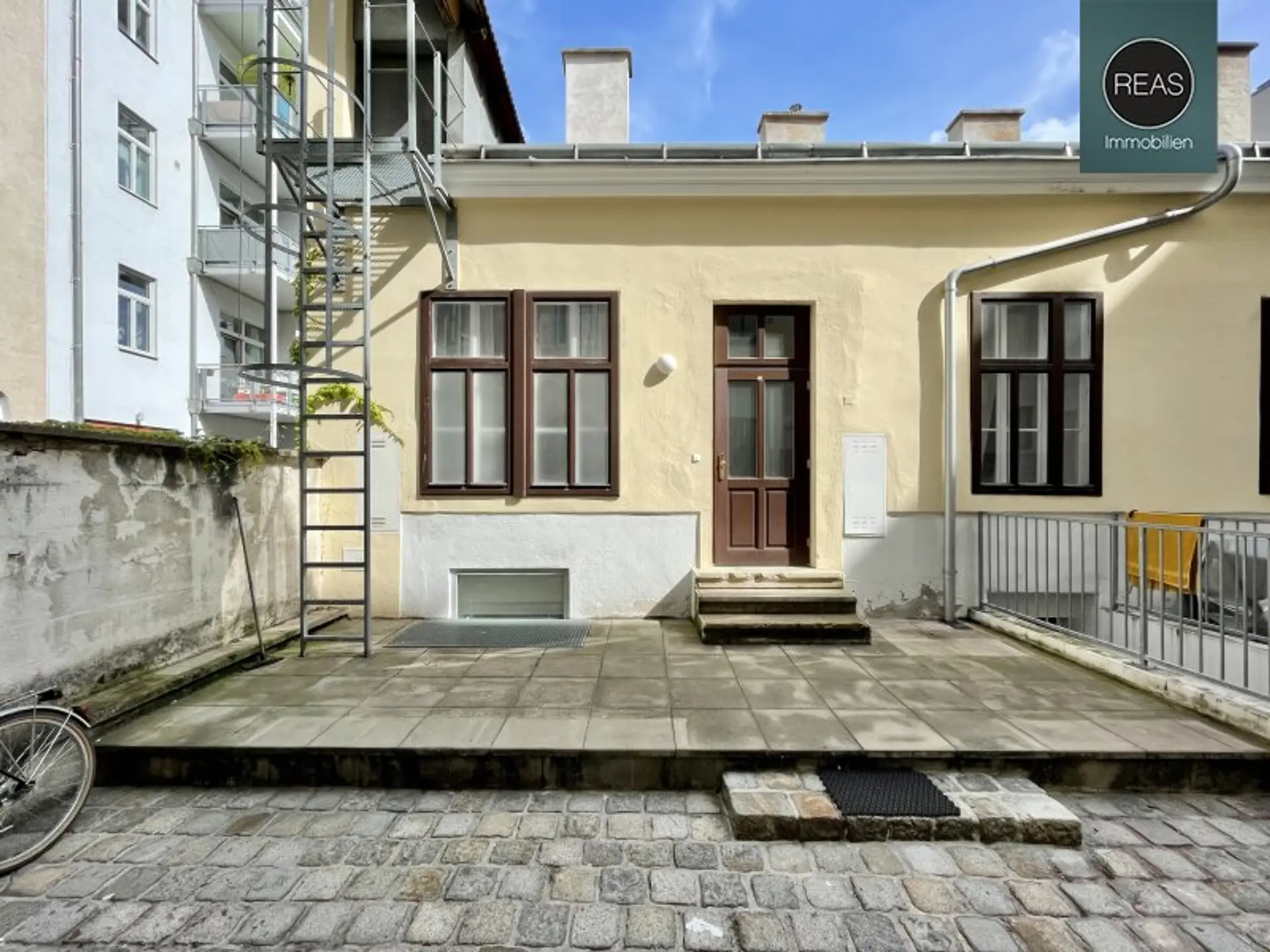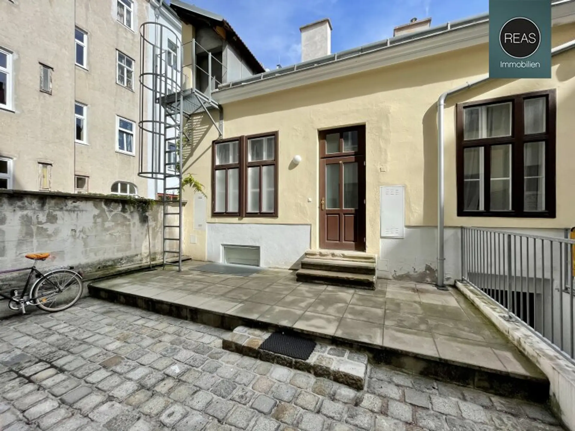 Zur Vermietung als Büro gelangt eine tolles Objekt mit Terrasse im Erdgeschoss eines wunderschönen alten Biedermeier-Fuhrwerkhauses. Das Haus befindet sich im ruhigen Innenhof und wurde vor einigen Jahren komplett renoviert.