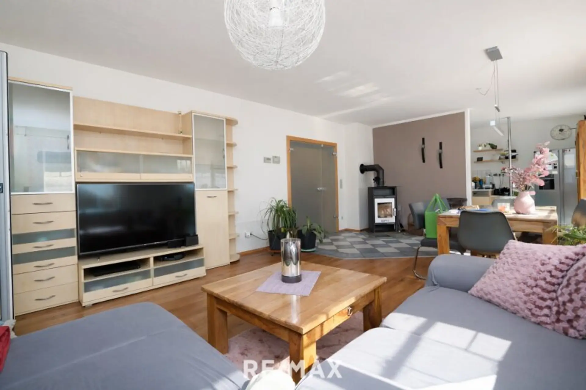 Der zentrale Lebensmittelpunkt des Hauses: Ein großzügiger Wohn-, Ess- und Küchenbereich mit gemütlichem Kamin bildet das Herzstück und geht fließend in den lichtdurchflutete Wintergarten, der den Wohnbereich erweitert und zu jeder Jahreszeit einen angenehmen Rückzugsort bietet, über. Ergänzt wird diese Ebene durch einen einladenden Vorraum, eine praktische Speis, ein WC, das Stiegenhaus sowie ein weiteres Zimmer, das sich ideal als Büro oder Gästezimmer nutzen lässt.