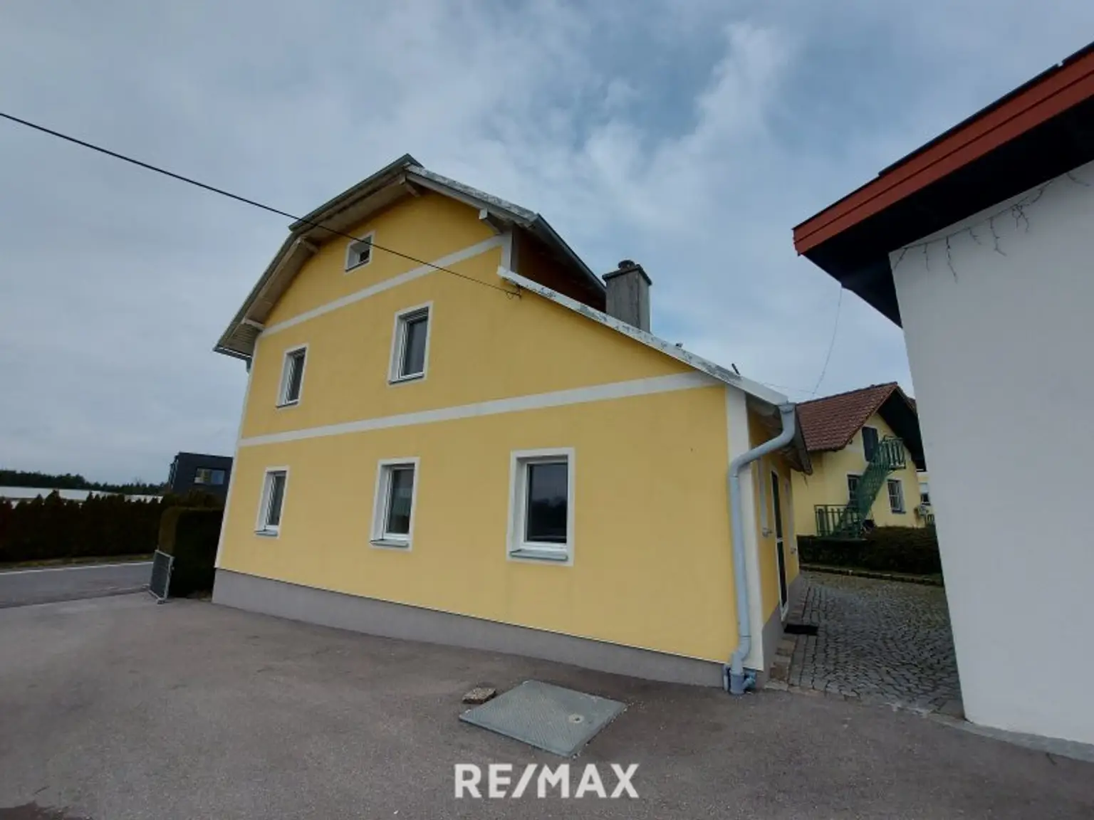 Es gibt auch eine großzügige Auffahrt mit einigen Stellplätzen.