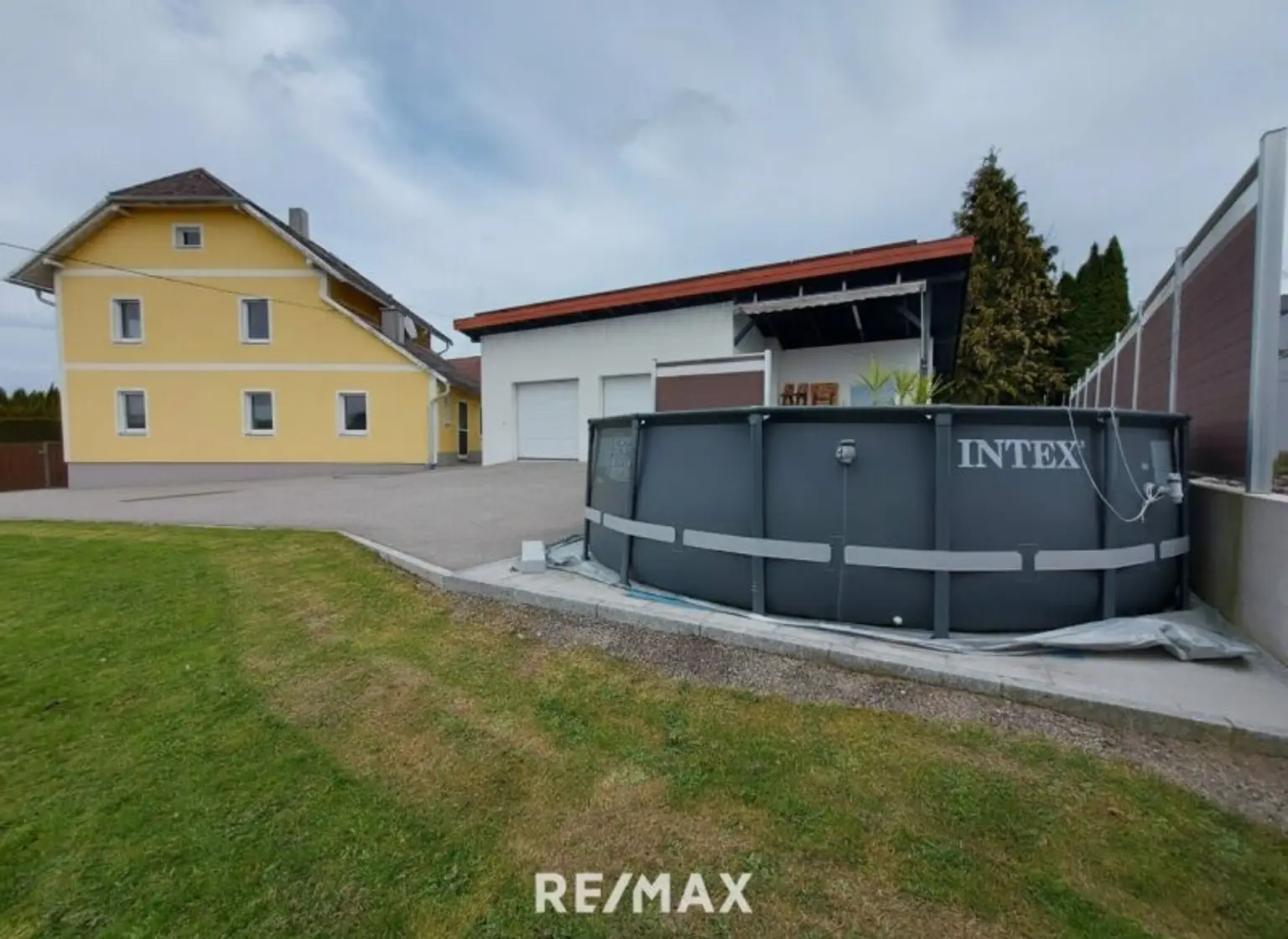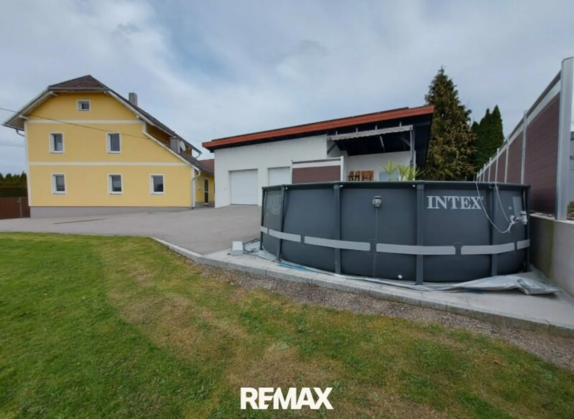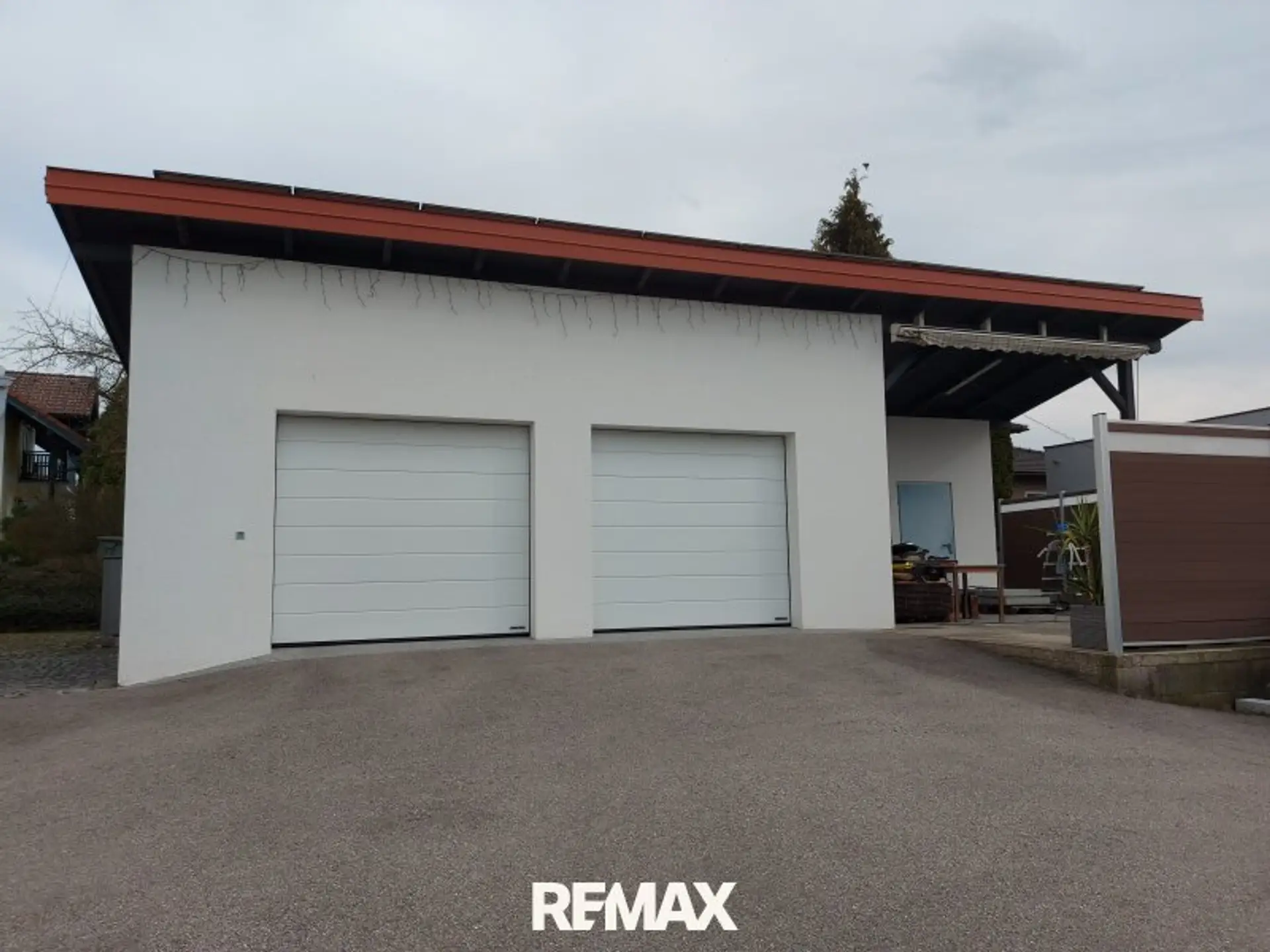 Die Doppelgarage wurde 2024 neu gebaut, mit einen Gartengeräteraum ca.9m², davor befindet sich eine Terrasse und ein Pool.