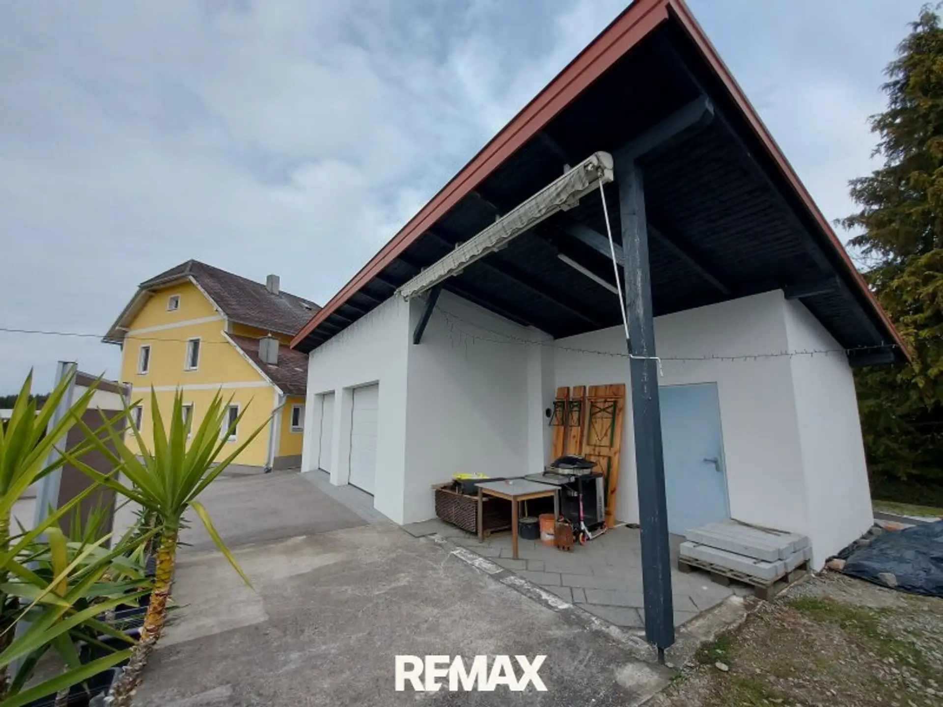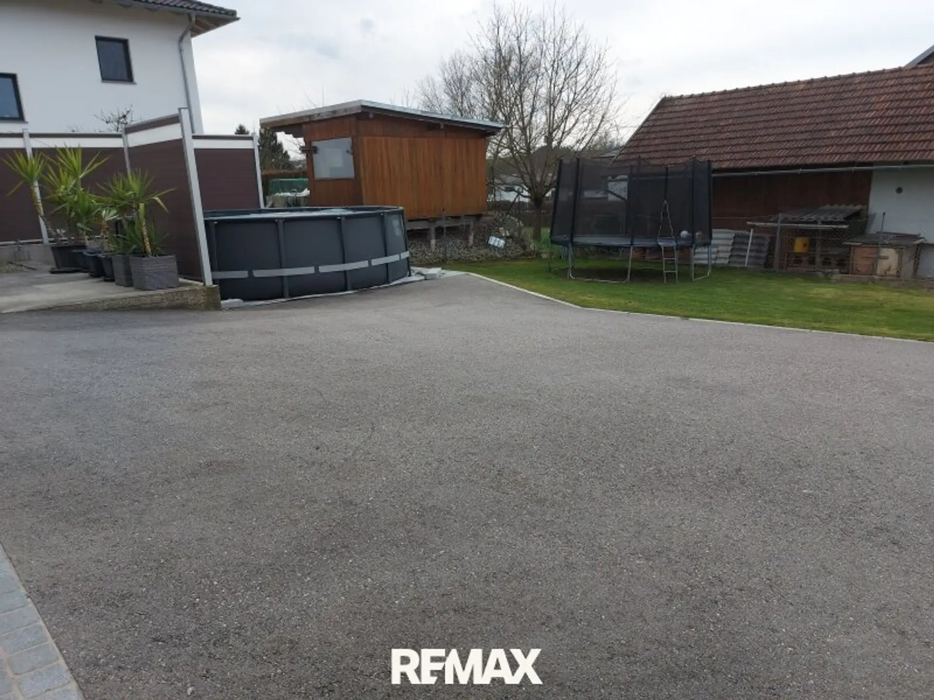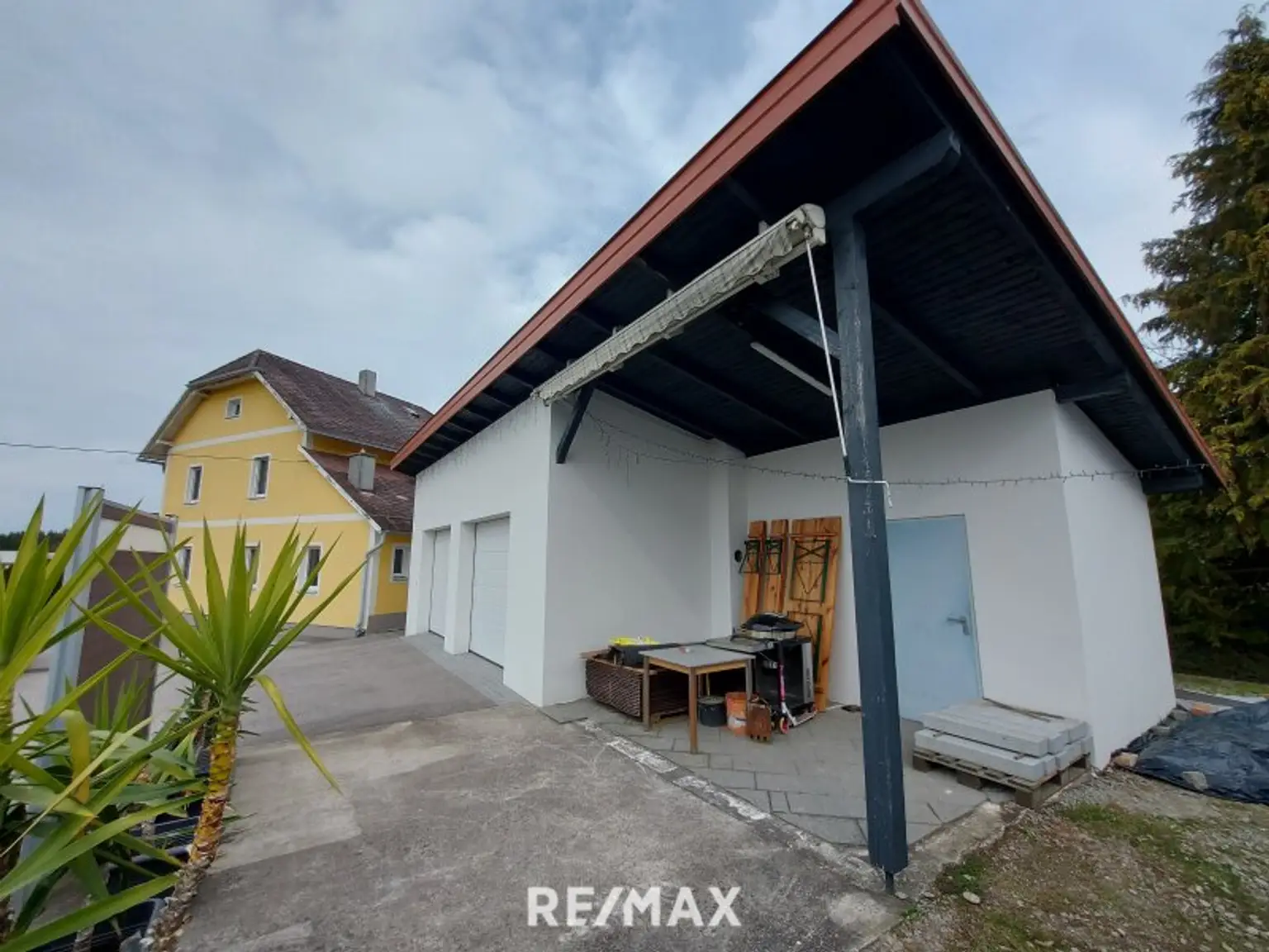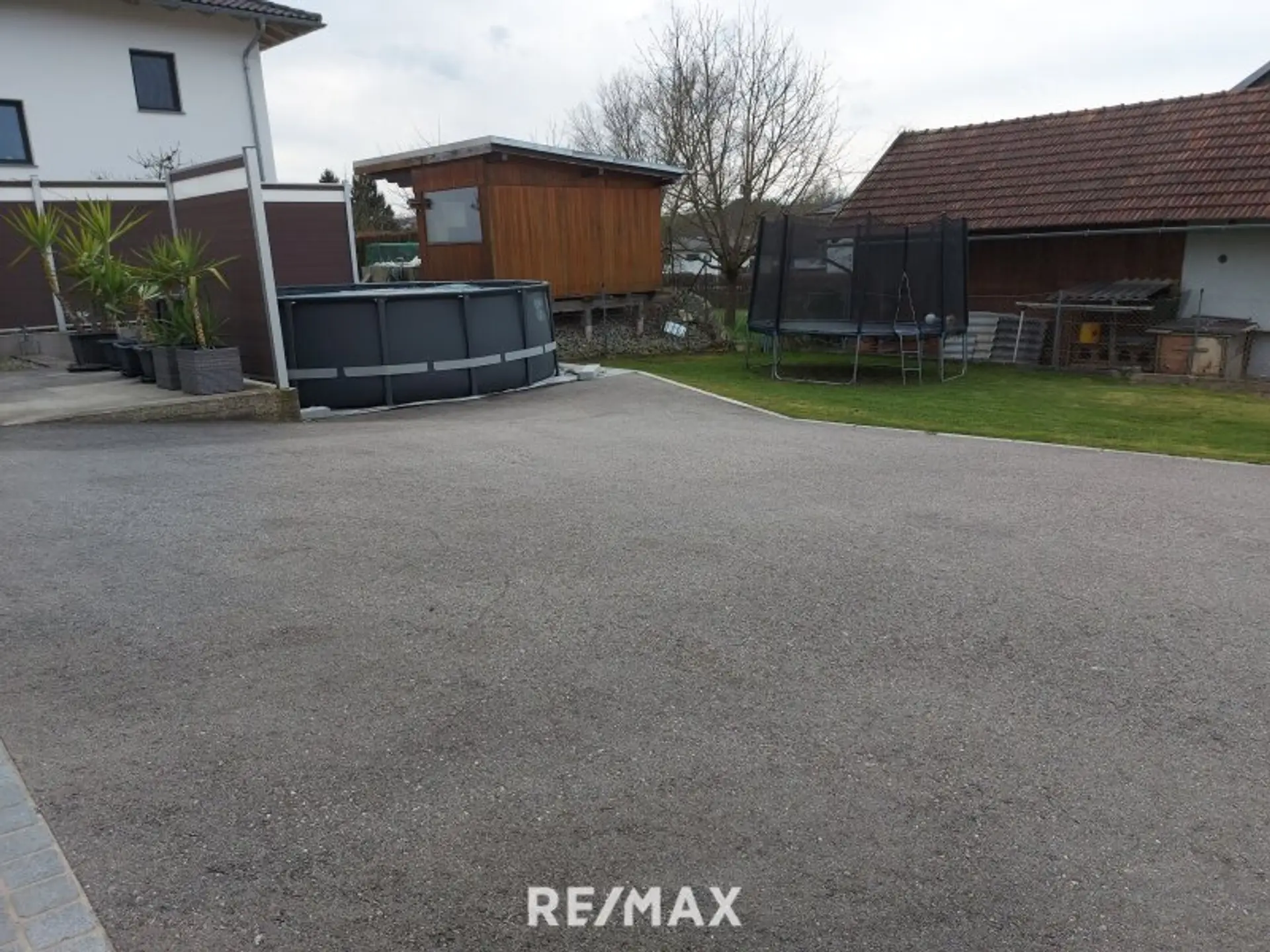 Die Doppelgarage wurde 2024 neu gebaut, mit einen Gartengeräteraum ca.9m², davor befindet sich eine Terrasse und ein Pool.