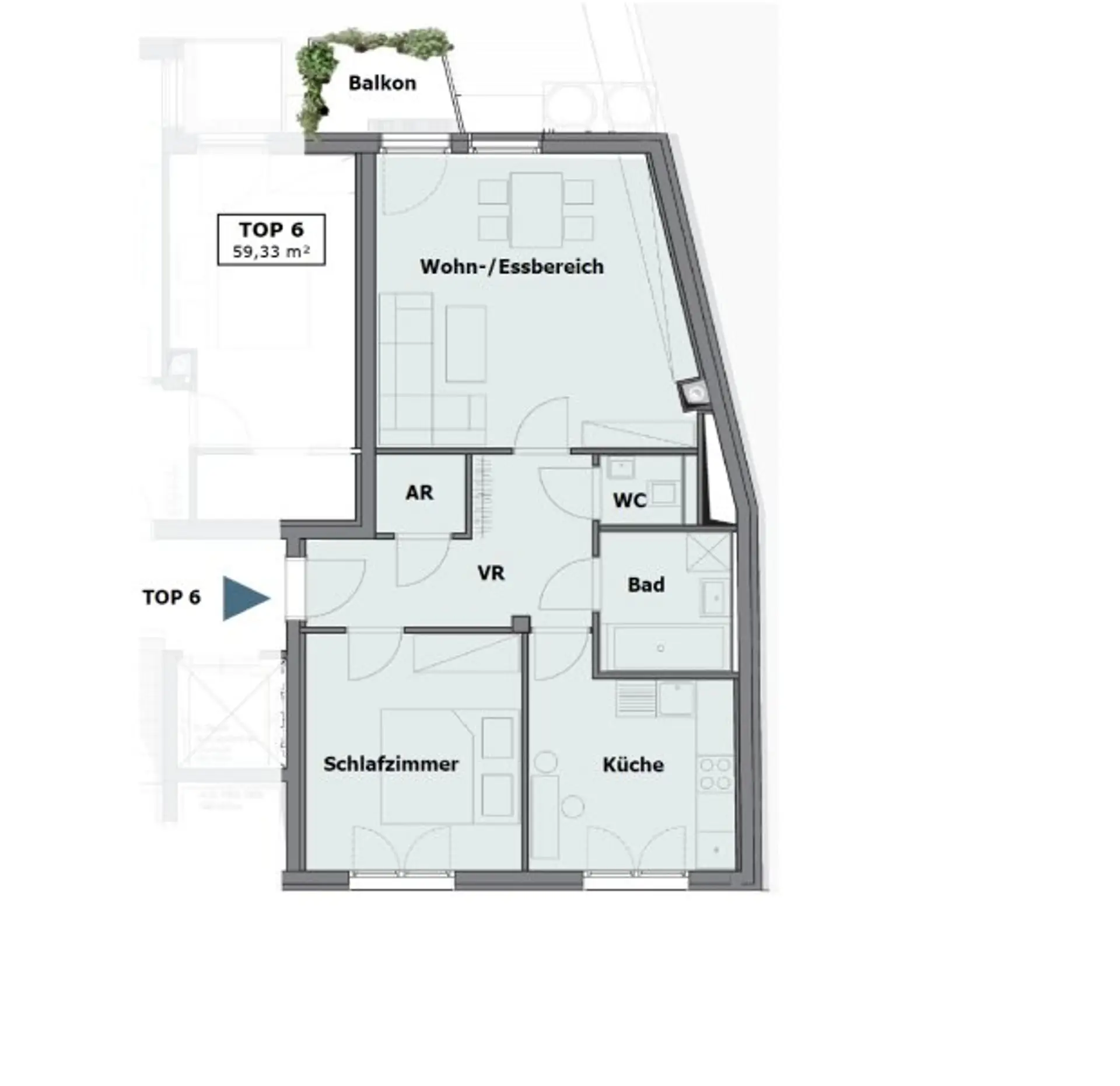 Diese Wohnung befindet sich in einem 2014 errichteten Neubau und wird erstmals bezogen. Die rund 60 m² Wohnfläche sind effizient geschnitten und bieten eine offene Wohnküche, ein separates Schlafzimmer, ein Badezimmer mit Badewanne, WC sowie einen Abstellraum. Der südseitige Balkon erweitert den Wohnraum angenehm ins Freie.