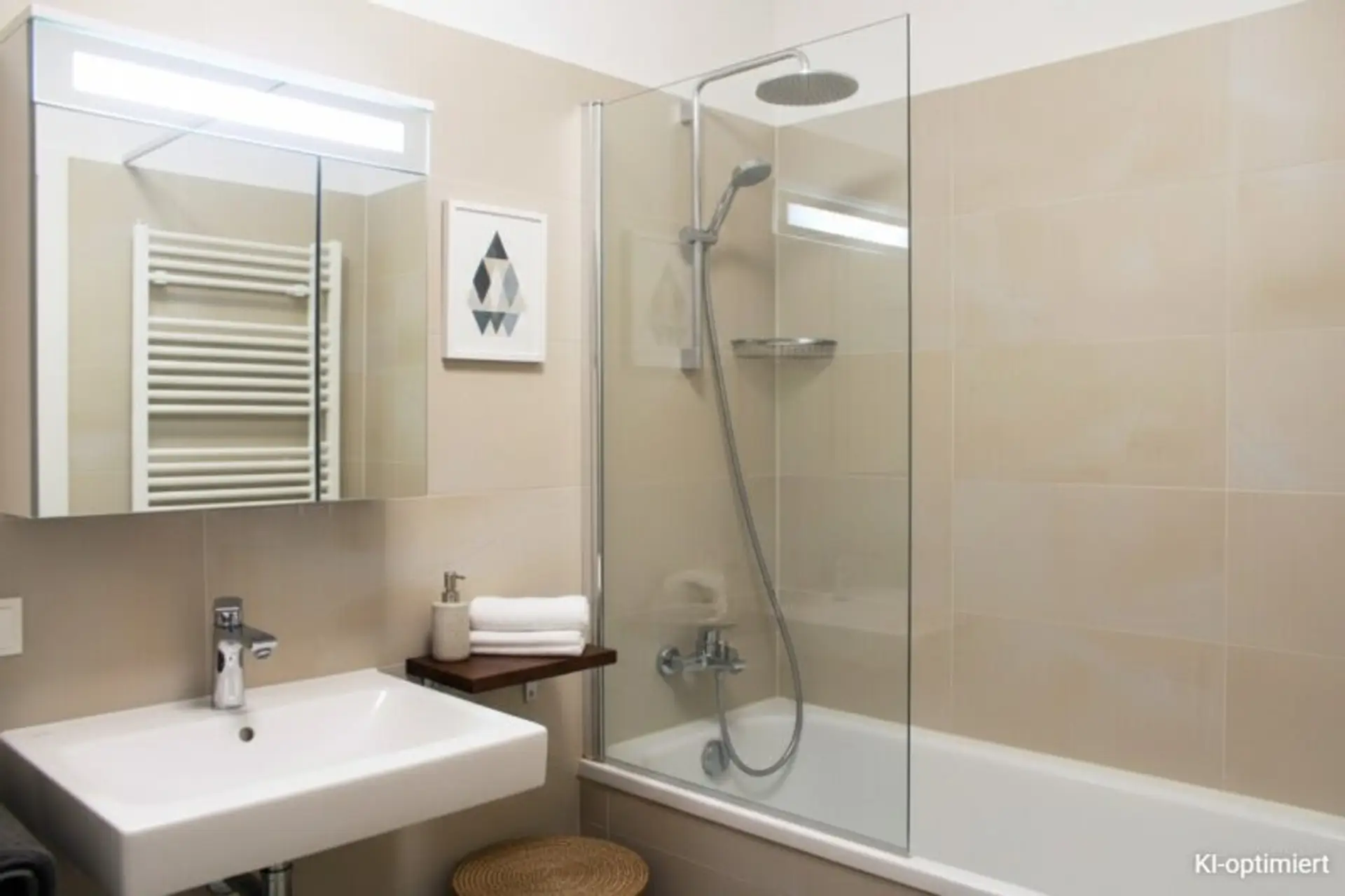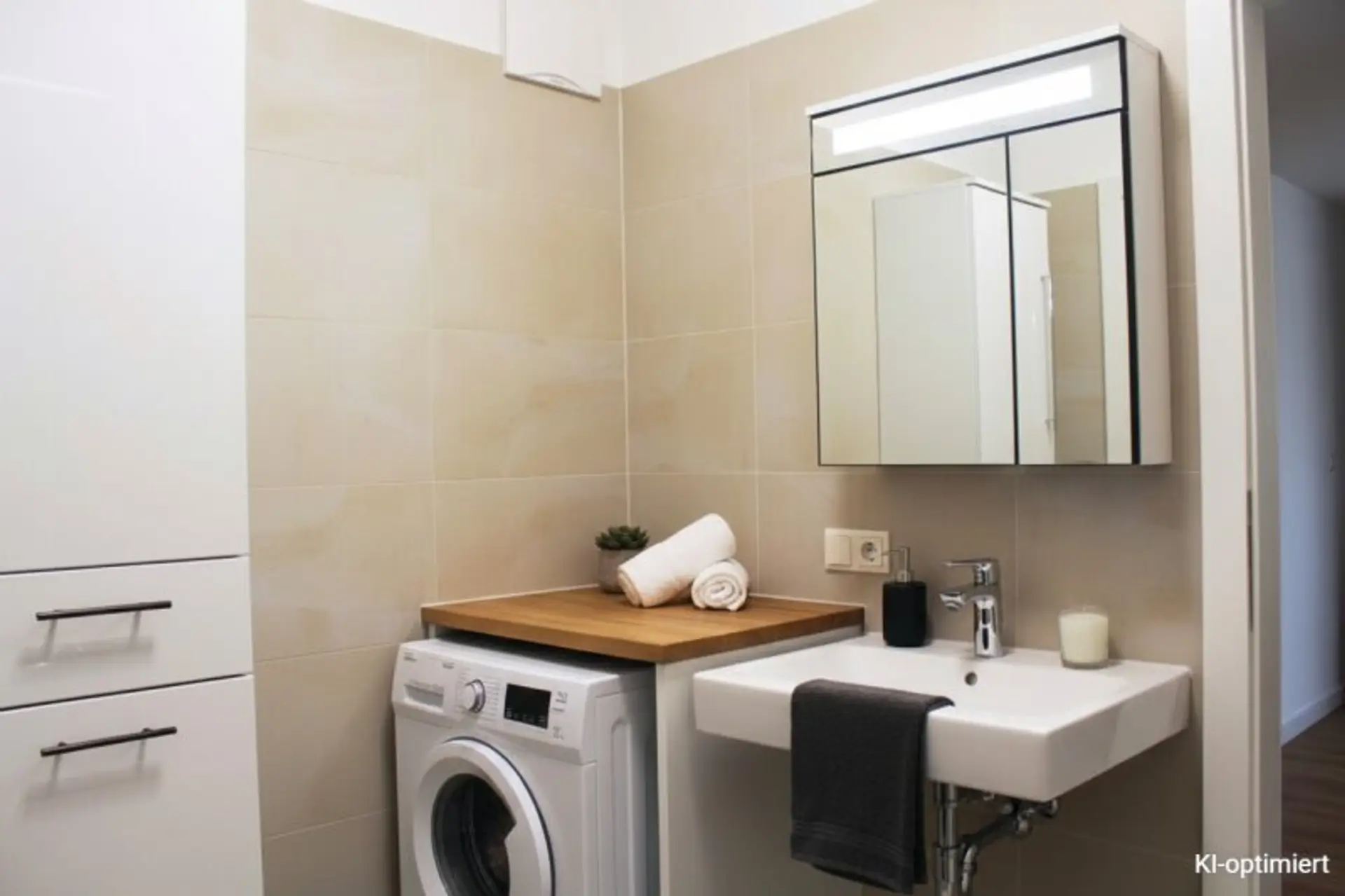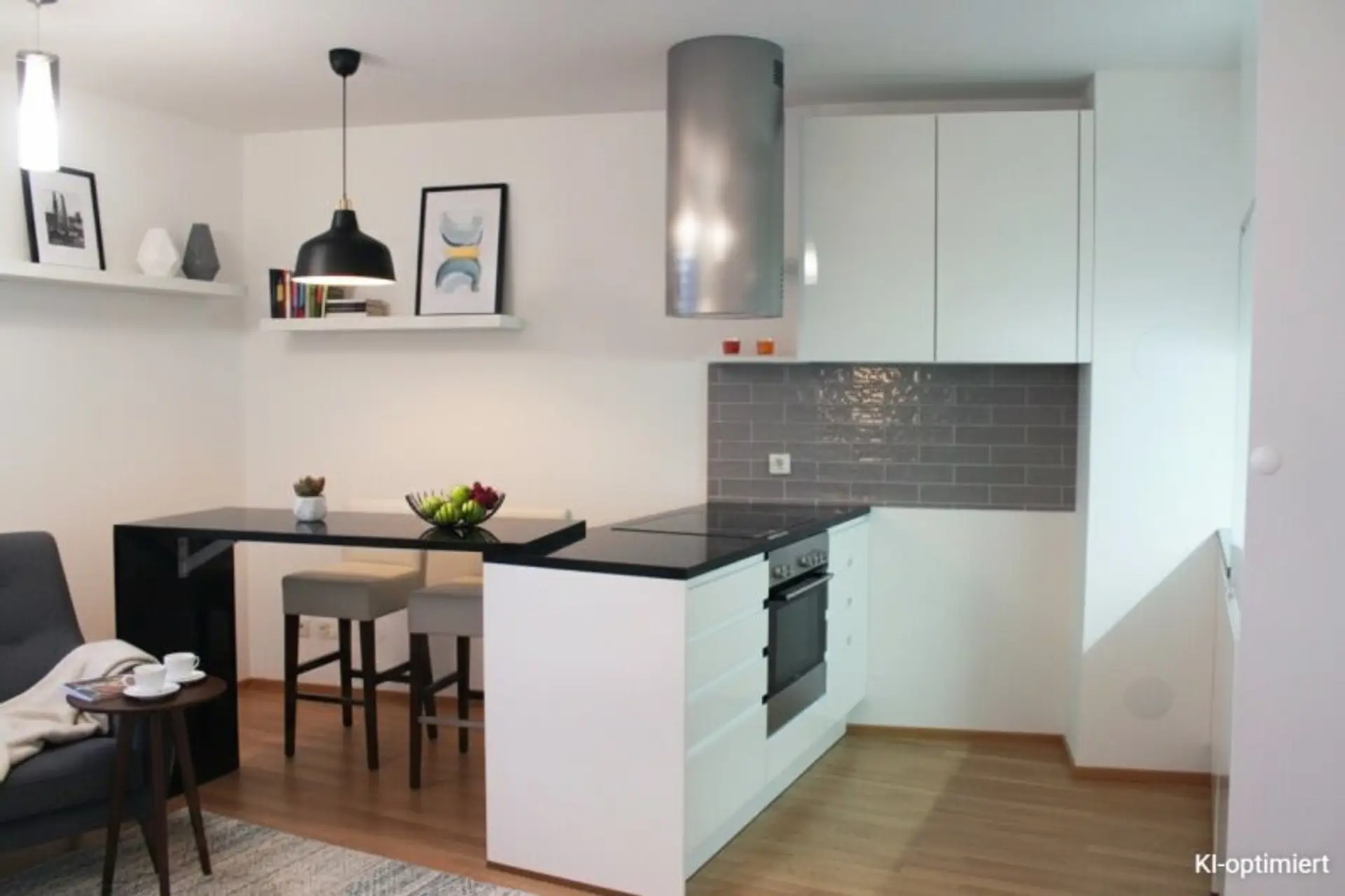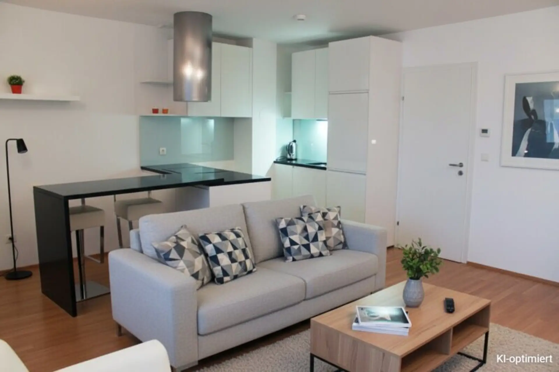 Die Ausstattung ist zeitgemäß und hochwertig: Parkett- und Fliesenböden, moderne Einbauküche, massive Bauweise, Mehrfachverglasung, außenliegender Sonnenschutz sowie öffenbare Fenster. Ein Personenaufzug ist vorhanden. Die Wohnung wird möbliert übergeben.