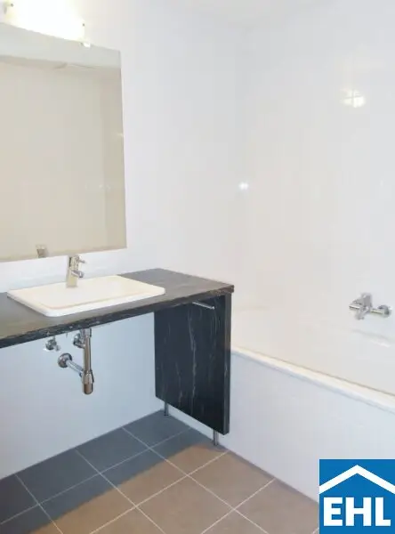 * Badezimmer mit Badewanne, Waschmaschinenanschluss und separates WC.